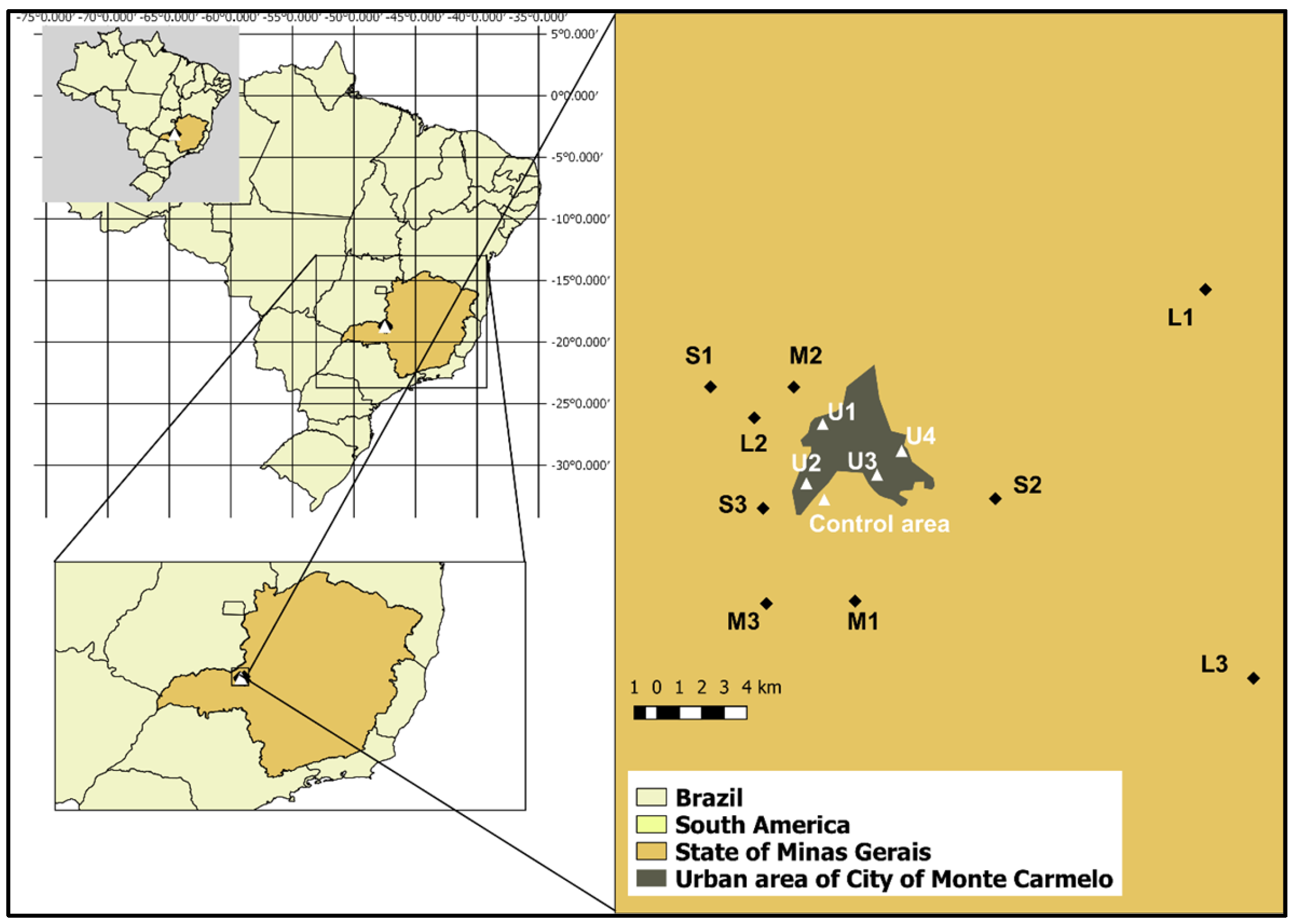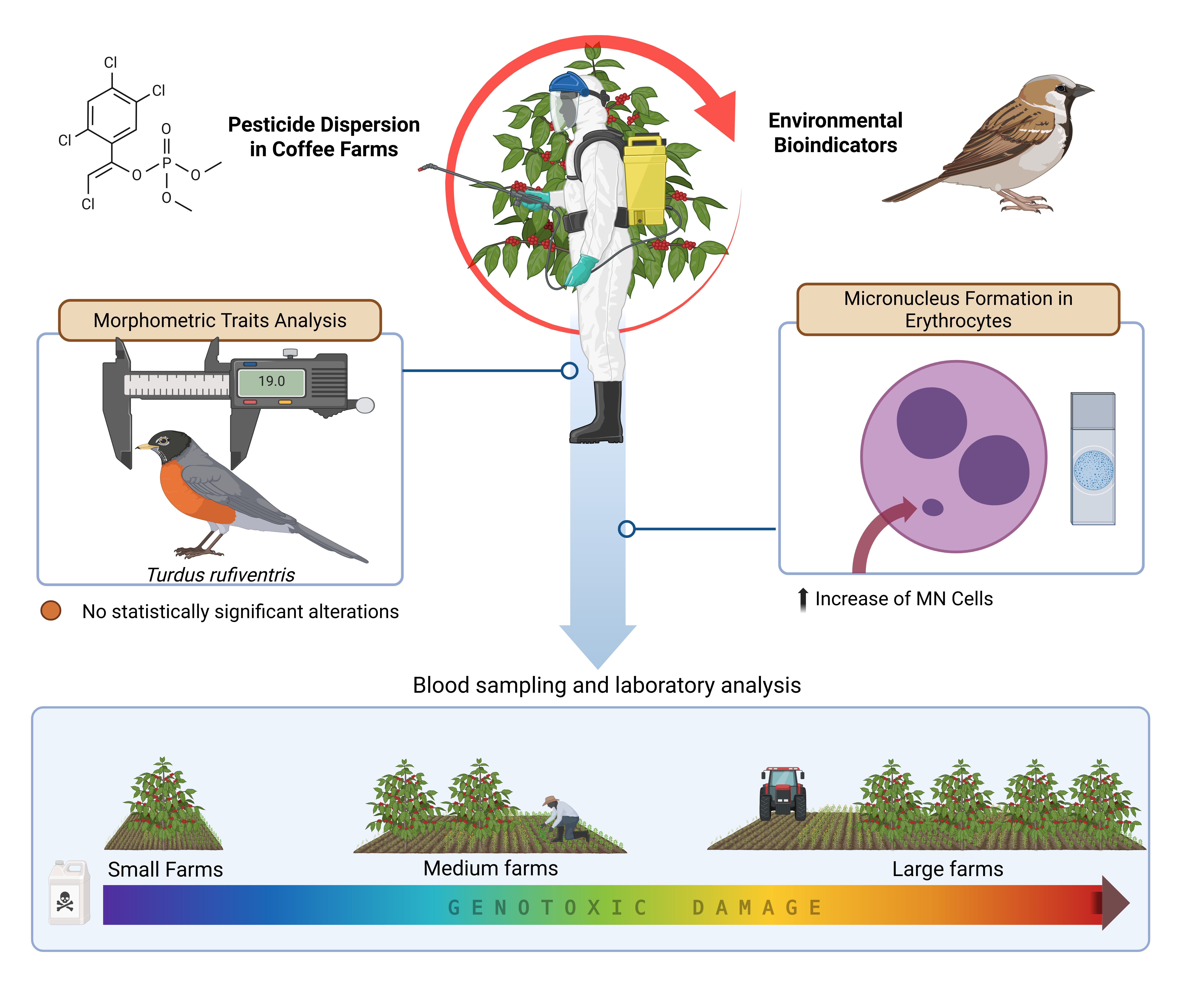 - Souto, H.N.; Campos Júnior, E.O.; Campos, C.F.; Rodrigues, T.S.; Pereira, B.B.; Morelli, S. Bioindicatoring birds: The use of a micronuclei test as a tool to assess environmental pollutants on coffee farms in southeast Brazil. Environ. Sci. Pollut. Res. 2018, 25, 24084–24092. [Google Scholar] [CrossRef] [PubMed]