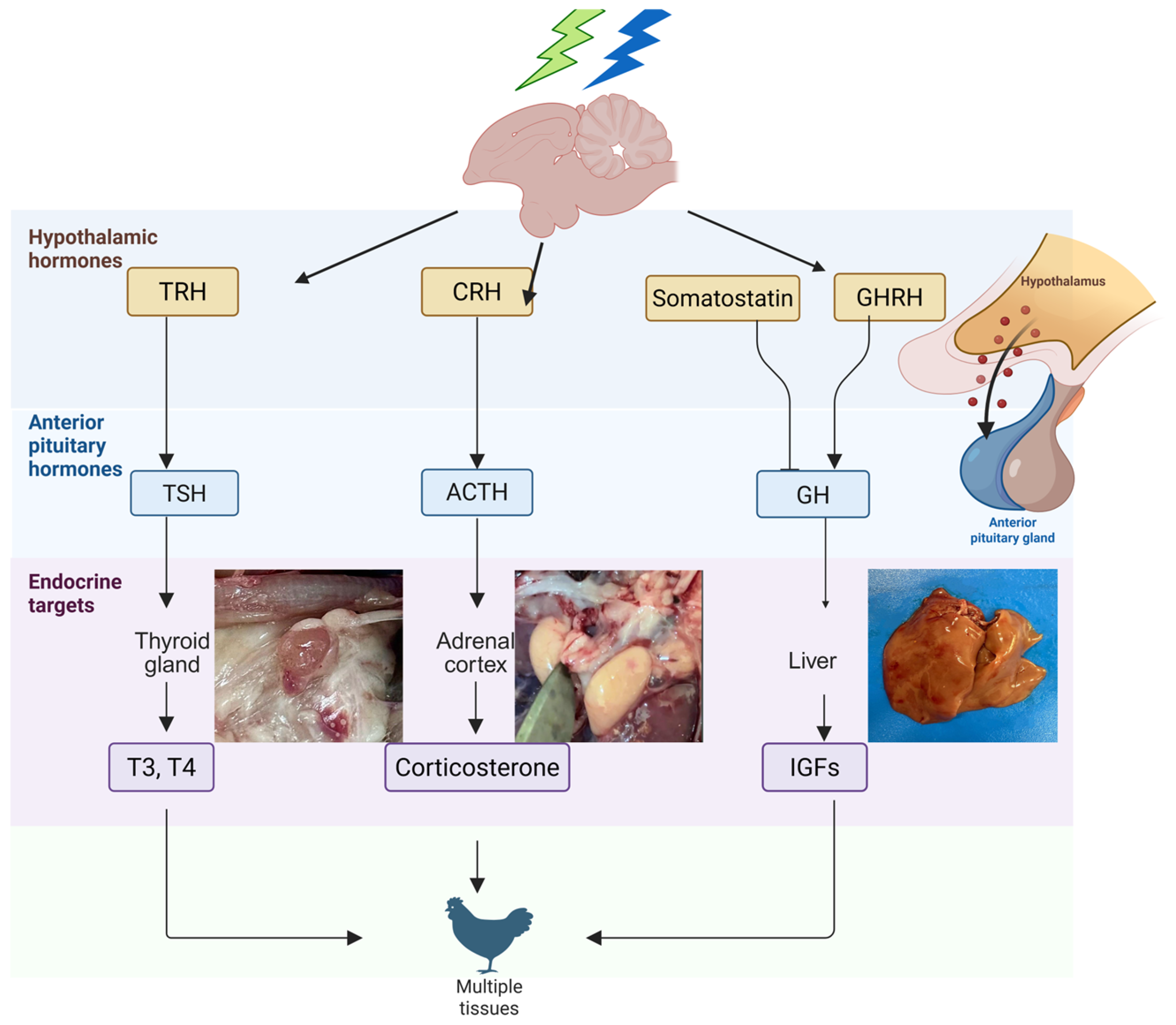 - Jenkins, S.; Porter, T. Ontogeny of the Hypothalamo–Pituitary–Adrenocortical Axis in the Chicken Embryo: A Review. Domest. Anim. Endocrinol. 2004, 26, 267–275. [Google Scholar] [CrossRef]