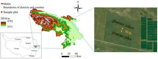 - Kang, Y.K.; Zhang, D.G.; Gou, J.Y.; Wang, H.F.; Yang, Y.B.; Su, J.H. Food habits and its seasonal changes of plateau pika (Ochotona curzniae) in Gannan meadow. J. Gansu Agric. Univ. 2019, 54, 132–138. [Google Scholar] [CrossRef]