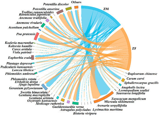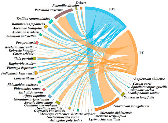 4.2. Sex-Specific Food Diversity and Trophic Niche in Plateau Pikas and Plateau Zokors