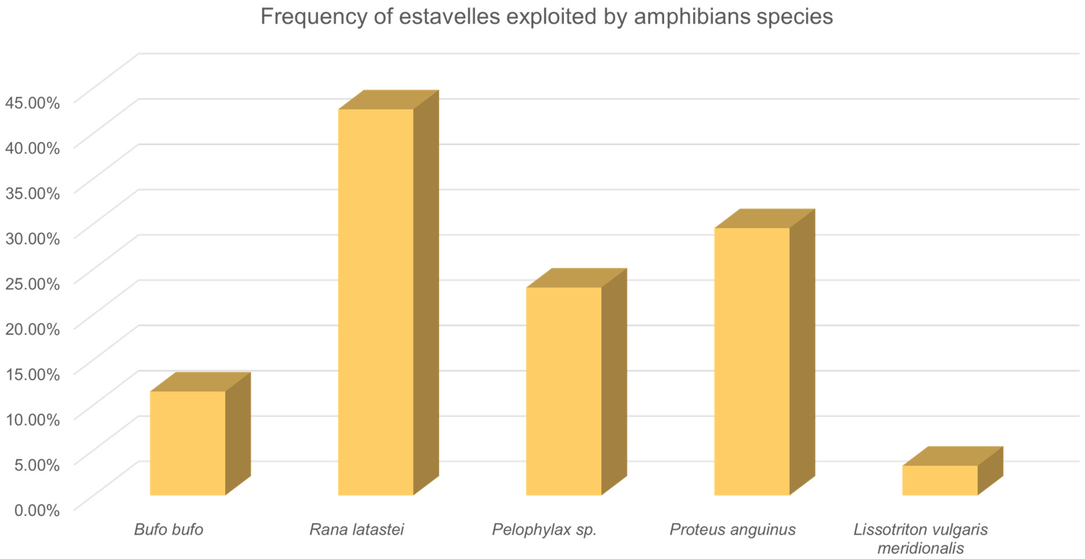 - Barbieri, F.; Bernini, F. Distribution and status of Rana latastei in Italy (Amphibia, Ranidae). Ital. J. Zool. 2004, 71, 91–94. [Google Scholar] [CrossRef]