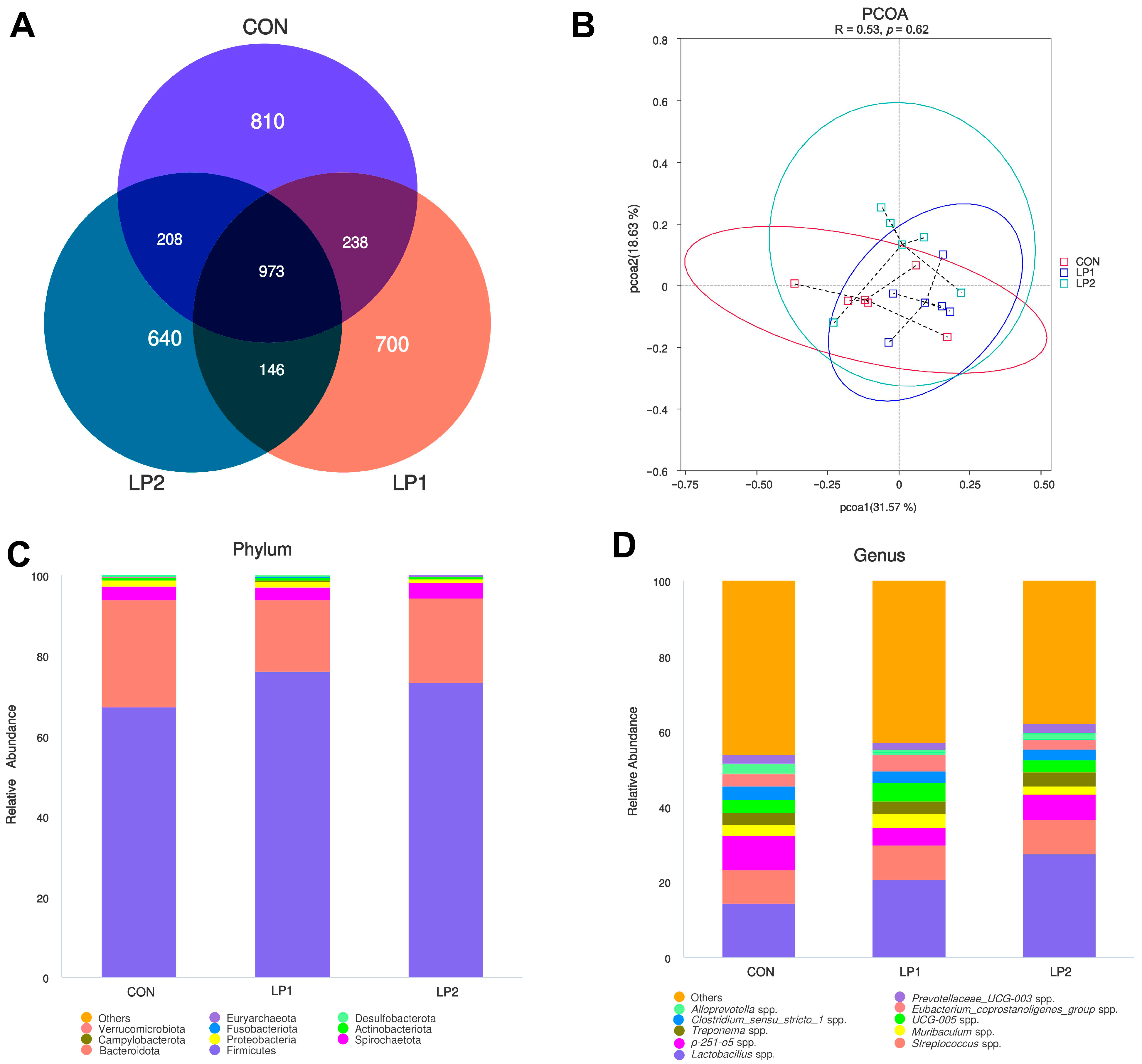 Faecalibacterium spp., while LP1 enriched