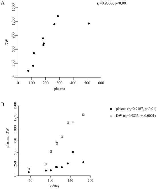 A significant positive correlation between thymol concentrations in plasma and kidney (r