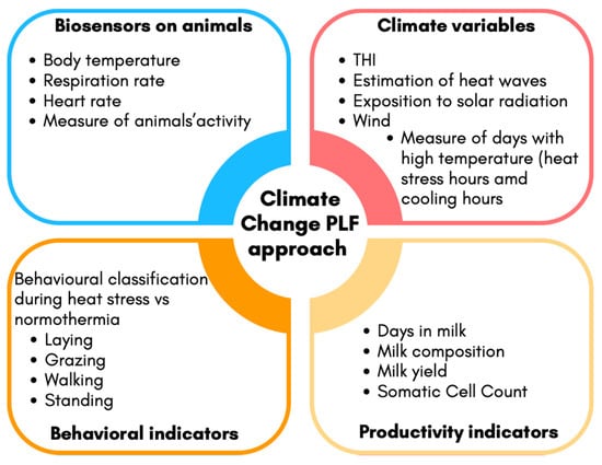 A stress response begins when the central nervous system perceives a potential threat to homeostasis. Factors such as trauma, noise, heat, humidity, environmental factors, and restriction of feed and water induce stress in animals. Regardless of the magnitude of the threat, the mere perception of stress is the critical event that activates a cascade of four coordinated biological responses: behavioral, autonomic nervous system, neuroendocrine, and immune responses. Moreover, the changes that occur are divided into three periods, i.e., alarm, resistance, and exhaustion [4,5]. From the alarm and resistance period to stressors or threats, the secretion of pituitary hormones by the hypothalamic–pituitary neuroendocrine system is altered; therefore, the broad and long-lasting effect of those hormones on immune competence, reproduction, metabolism, and behavior is modified, leading to a reduction in or an alteration of previous biological responses and a variety of syndromes. However, the intensity and display of these syndromes differ among individuals. Glucocorticoids such as cortisol alter glucose metabolism via glycogenolysis, increasing the blood concentration of glucose. In this context, blood pressure and mental activity increase, and fatty acids are mobilized from adipose tissue. Also, the autonomic sympathetic system stimulated by stressors releases epinephrine from the medulla of the adrenal gland, which exerts a cortisol-like effect, increasing body temperature, respiration rate, and depth. The physiological response can be of short or long durations. However, in the case of stressors exposure is prolonged, or when the effects are severe, body defense mechanisms become insufficient, and an exhaustion period occurs [3]. The biological cost during the exhaustion period becomes a significant burden to the body, during which animals enter the prepathological and pathological stage of stress [6]. The prepathological state can be defined as a condition in which biological functions are sufficiently altered to place animals at risk of developing pathologies in the broadest sense. This concept is essential, as it encompasses not only the onset of disease due to stress but also metabolic shifts that allow animals to grow, reproduce, or exhibit changes in normal behavior [6]. Heat stress in livestock can be defined as a multidimensional physiological challenge arising when the environmental thermal load exceeds the animal’s capacity for heat dissipation, triggering a cascade of adaptive responses. According to Moberg’s concept of the summation of a stressor, heat stress can interact synergistically with concurrent physiological demands, such as lactation and pregnancy, amplifying the metabolic burden. In this context, thermoregulation imposes a significant energy cost, resulting in altered metabolic prioritization that may compromise productive and reproductive functions, and this potentially drives the organism into a pre-pathological state since the distress period can last until the animal restores biological functions to pre-stress levels (in the absence of heat stress). Moreover, the recent heat wave trends in Europe [7], mainly driven by climate change, cause perturbations in the large-scale circulation system. These changes lead to the increased intensity and frequency of hot extreme events, such as heat waves, characterized by extremely warm and dry periods, resulting in a high number of fatalities and significant financial losses, especially in the agriculture and health sectors. Therefore, measuring or defining stress and distress in animals living in the current changing scenario is a challenge, and this can be addressed using the precision livestock farming (PLF) approach by combining data from sensors, automated systems, data analytics, and artificial intelligence systems integrated with farm management software. According to Berckmans [8], the primary aim of PLF is to “manage individual animals by continuous real-time monitoring of health, welfare, production/reproduction, and environmental impact.” The term continuous refers to data being measured and analyzed every second, 24 h a day, 7 days a week. These technologies are designed to automatically detect deviations from normal patterns and trigger warning alerts for farmers, allowing for timely interventions. This ultimately supports both animal welfare and farm efficiency. In the context of climate change, PLF systems should include sensors capable of detecting environmental fluctuations, such as those affecting the temperature–humidity index (THI), which combines temperature and humidity into a single index [9], along with monitoring behavioral patterns typically associated with thermal discomfort (e.g., changes in feeding, resting, or respiration behavior). In this regard, developing integrated prediction systems would be highly valuable. These systems should combine data from biosensors on animals (e.g., body temperature, respiration rate); environmental sensors (e.g., THI); and productivity indicators (e.g., milk yield, milk composition, somatic cell count) to better detect early signs of thermal discomfort and provide a more sensitive measure of the animal’s biological response to environmental stressors. However, as demonstrated in numerous studies, the response to stressors is highly individual-specific. Even within the same herd and under identical environmental conditions, some animals may be more affected than others—potentially entering a pre-pathological state before the onset of overt clinical symptoms. This concept is fundamental in the development of PLF technologies, as it requires viewing the animal as a complex, individually different, time-varying, and dynamic (CITD) system [8]. Each animal is biologically unique, responds to stimuli in a temporally variable manner, and continuously interacts with its environment through both innate and adaptive regulatory mechanisms [10]. When these mechani