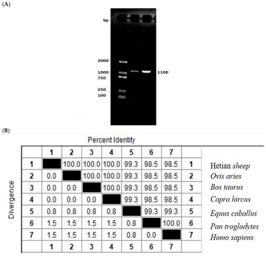 Genomic DNA was extracted from blood by the phenol–chloroform method. Genotyping primers designed for the ID2 loci were used to detect target variants. PCR was performed on a Veriti™ 96-Well Thermal Cycler (Thermo Fisher Scientific, Waltham, MA, USA). Each 25 µL reaction contained 12.5 µL 2× EasyTaq® PCR SuperMix (TransGen Biotech, Beijing, China), 9.5 µL nuclease-free water, 1.0 µL of each primer (10 µM), and 1.0 µL genomic DNA. Amplicons of the expected size were purified and submitted to Sangon Biotech (Shanghai, China) for Sanger sequencing. Trace files were inspected in Chromas 2.6.6, and sequences were aligned to the ovine reference in DNAMAN to identify polymorphic sites.