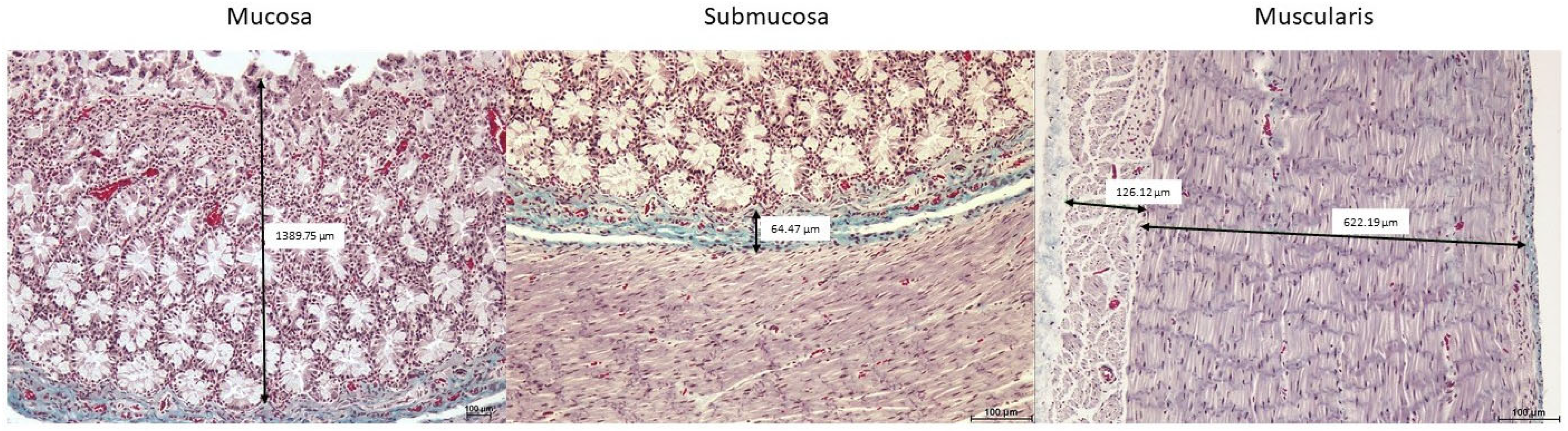 2.3. Measurement of Histological Layer Thickness in the GIT