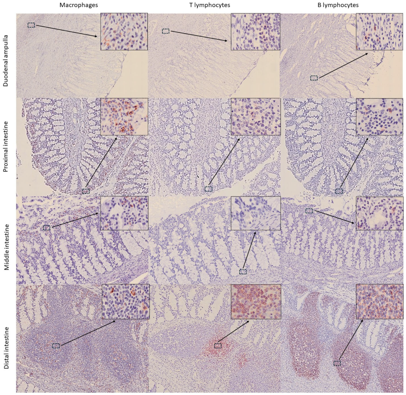3.2. Distribution of Immune Cells Within Gastrointestinal Tract (GIT) and Associated Lymphoid Tissue