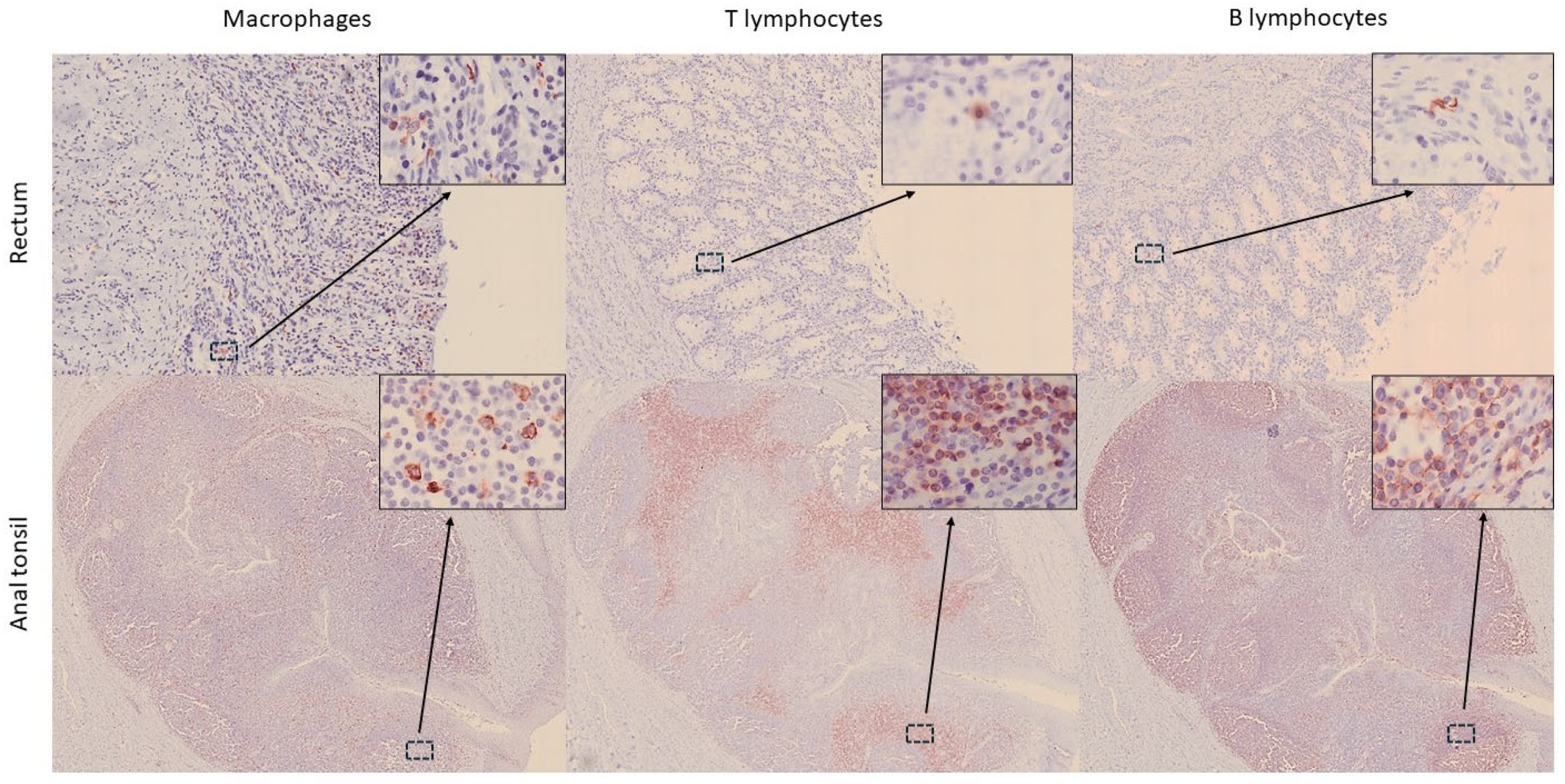 | CD20 (1:400) | B lymphocytes | Polyclonal PA5-16701 | ThermoFisher, Waltham, MA, USA | Goat anti-rabbit (1:200) | BA-1000-1.5 | Vector Laboratories, Newark, CA, USA |