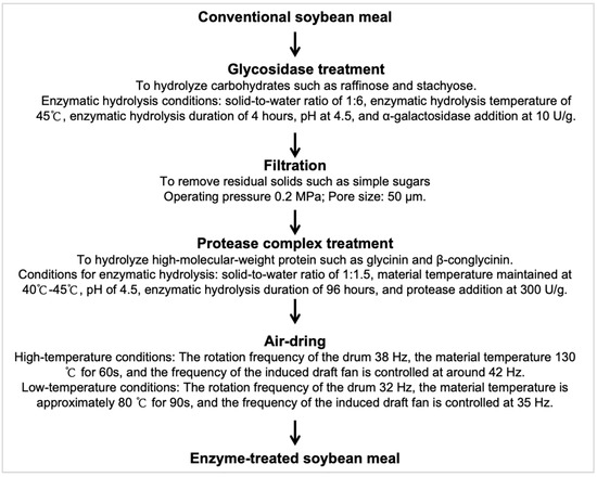 17]. However, in the enzymatic hydrolysis of soybean meal, the following challenges still occur: The soluble carbohydrates (e.g., raffinose and stachyose) in soybean meal may sterically hinder protease activity, potentially impairing the enzymatic hydrolysis of soybean proteins [