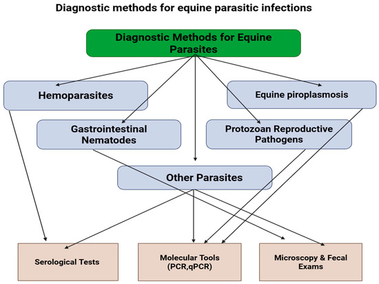 - Wang, T.; Chen, X.; Yan, X.; Su, Y.; Gao, W.; Liu, C.; Wang, W. Progress in serology and molecular biology of equine parasite diagnosis: Sustainable control strategies. Front. Vet. Sci. 2025, 12, 1663577. [Google Scholar] [CrossRef] [PubMed]