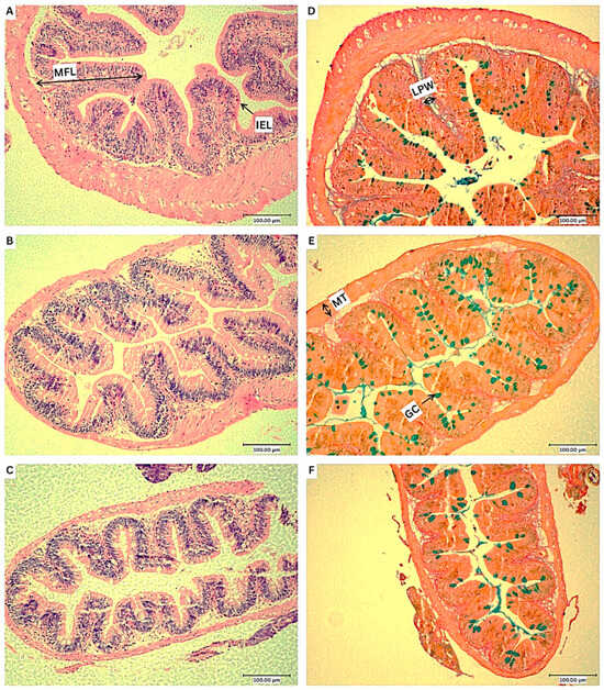 - Gonçalves, M.; Lopes, C.; Silva, P. Comparative Histological Description of the Intestine in Platyfish (Xiphophorus maculatus) and Swordtail Fish (Xiphophorus helleri). Tissue Cell 2024, 87, 102306. [Google Scholar] [CrossRef]