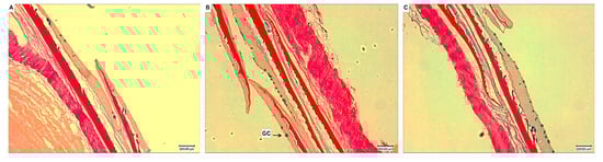| Mucosal fold length (µm) | 120.6 ± 29.5 a | 166.0 ± 27.5 b | 123.0 ± 27.1 a |