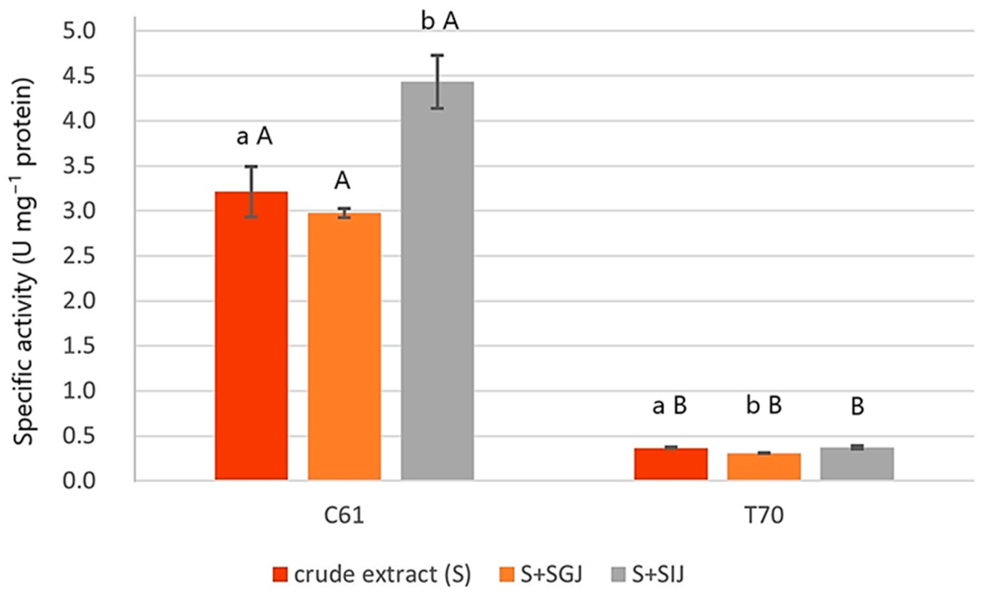 | T70 | 16.33 ± 0.58 a | 14.00 ± 1.00 b |