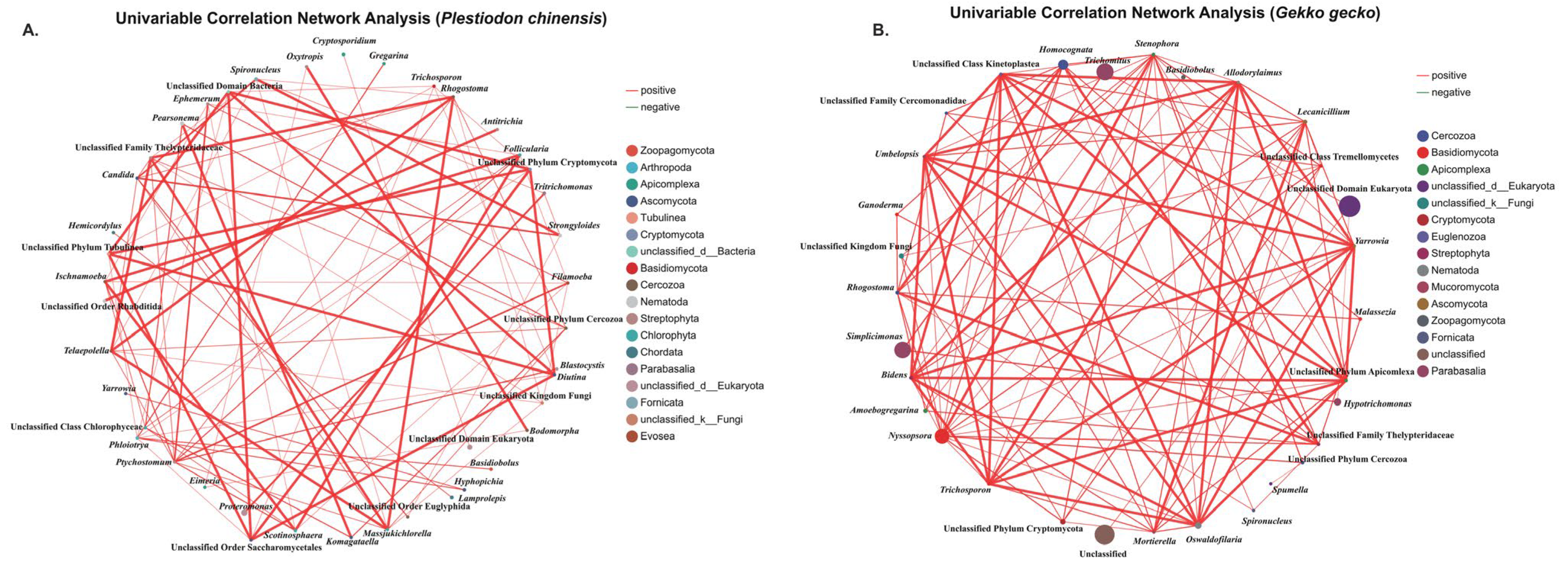 | Plestiodon chinensis | Cryptosporidium | unclassified Eukaryota | 0.6138 | 3.08 × 10−3 |