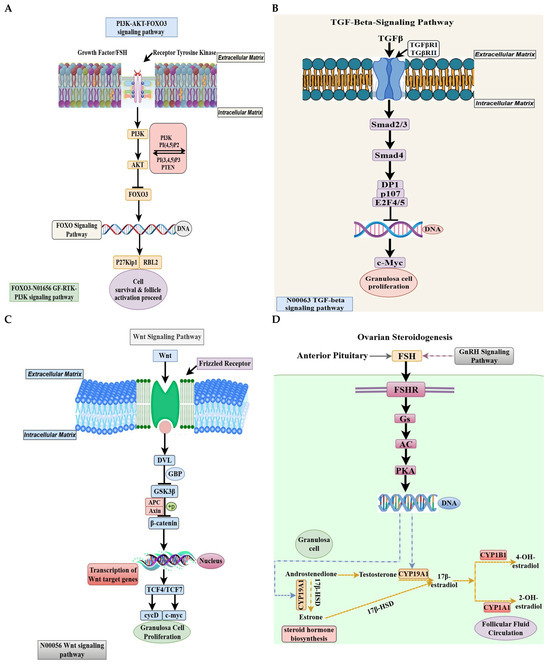 - Zhao, H.; Dinh, T.H.; Wang, Y.; Yang, Y. The roles of MAPK signaling pathway in ovarian folliculogenesis. J. Ovarian Res. 2025, 18, 152. [Google Scholar] [CrossRef]