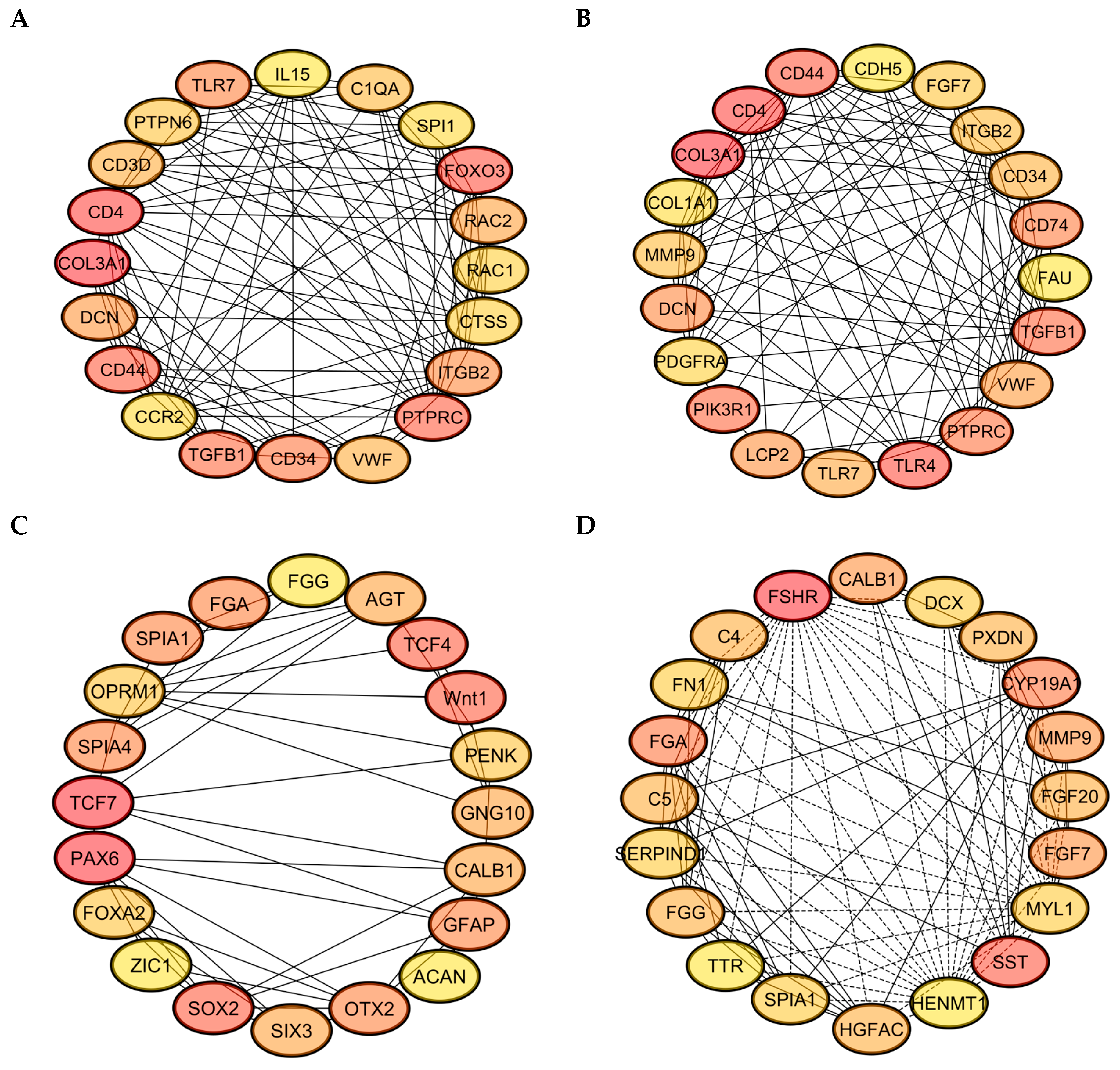 2.7. Protein–Protein Interaction (PPI) and Hub Gene Identification