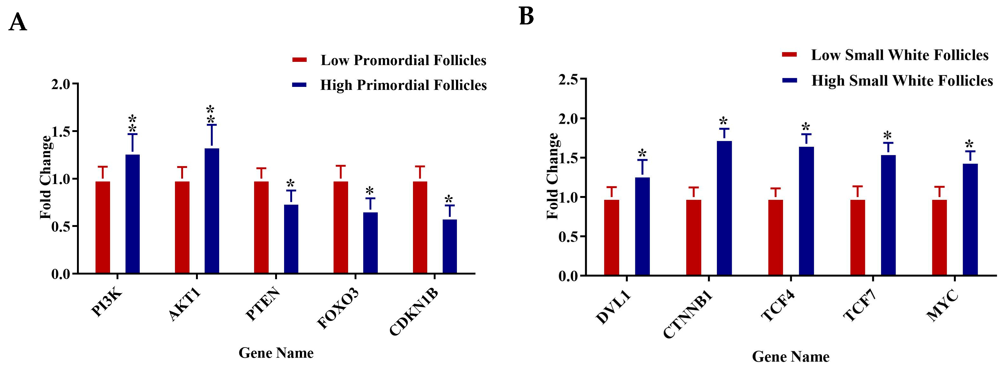- Wang, Y.; Chen, Q.; Liu, Z.; Guo, X.; Du, Y.; Yuan, Z.; Guo, M.; Kang, L.; Sun, Y.; Jiang, Y. Transcriptome analysis on single small yellow follicles reveals that Wnt4 is involved in chicken follicle selection. Front. Endocrinol. 2017, 8, 317. [Google Scholar] [CrossRef] [PubMed]