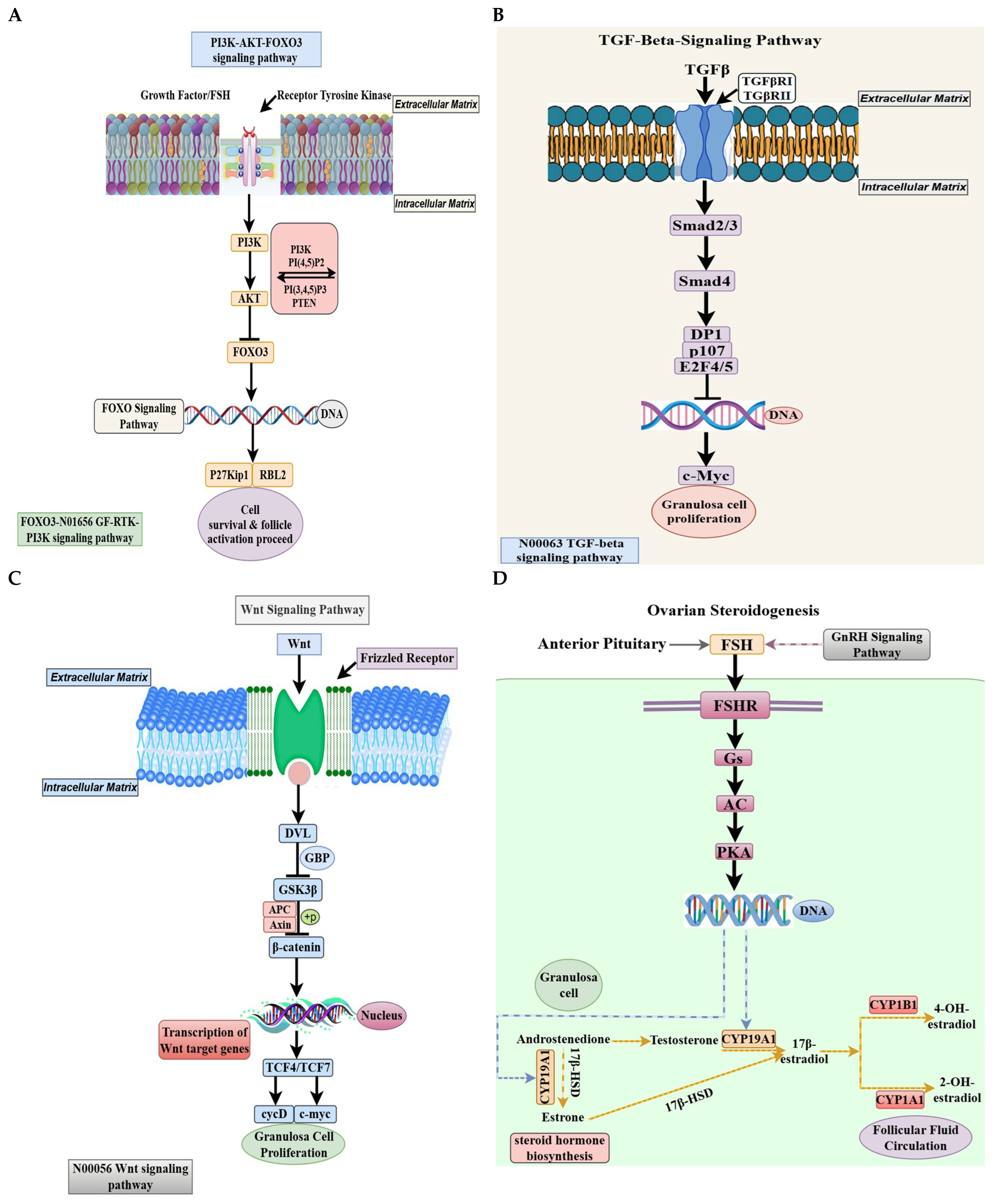 4.1. PI3K-AKT-FOXO3 Signaling: A Pivotal Axis in Primordial Follicular Activation