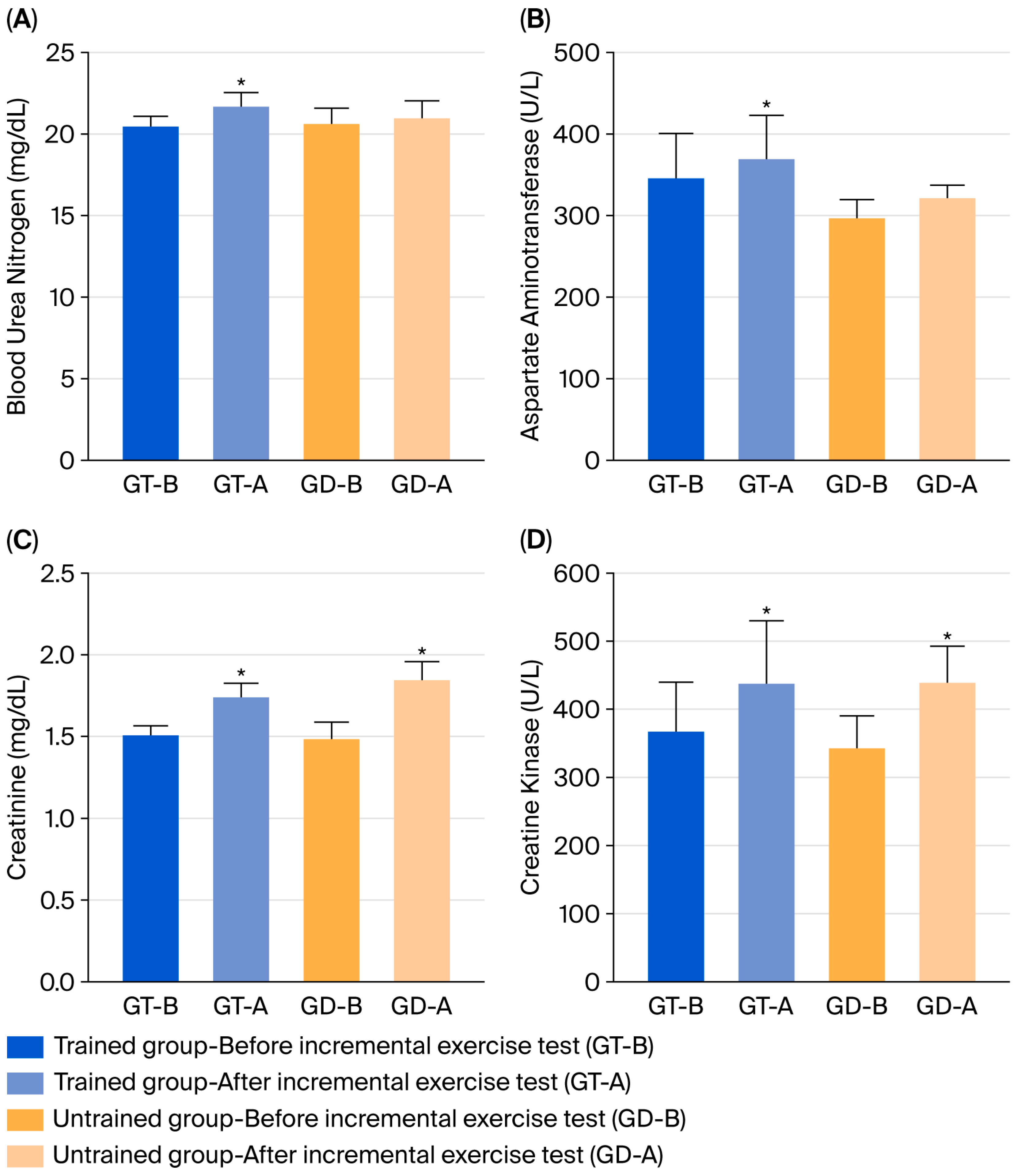 - Zuluaga-Cabrera, A.M.; Casas Soto, M.J.; Martínez Aranzales, J.R.; Castillo Vanegas, V.E.; Correa Valencia, N.M.d.P.; Arias Gutiérrez, M.P. Hematological, biochemical, and endocrine parameters in acute response to increasing-intensity exercise in Colombian Paso horses. Rev. Mex. Cienc. Pecu. 2022, 13, 211–224. [Google Scholar] [CrossRef]