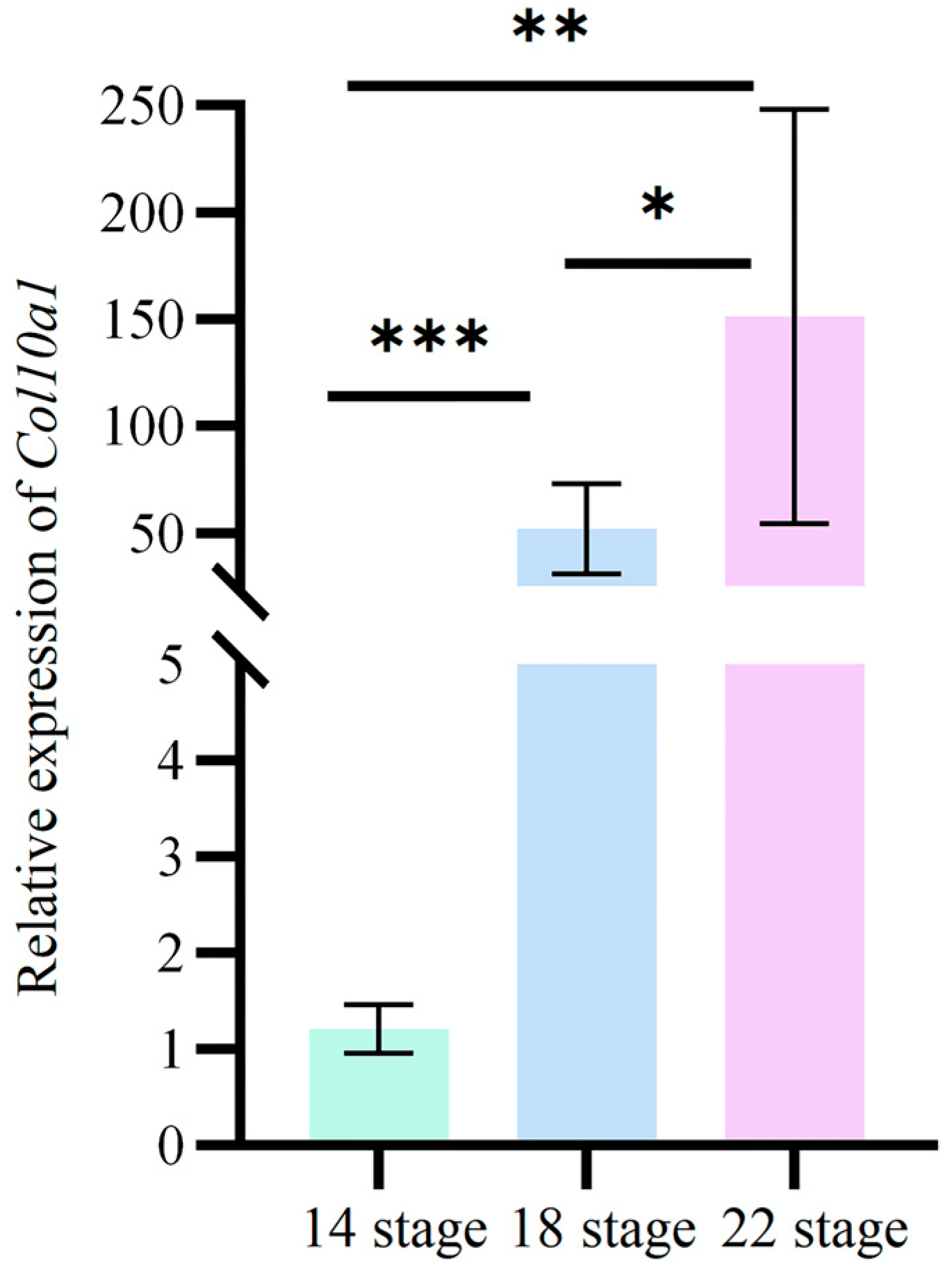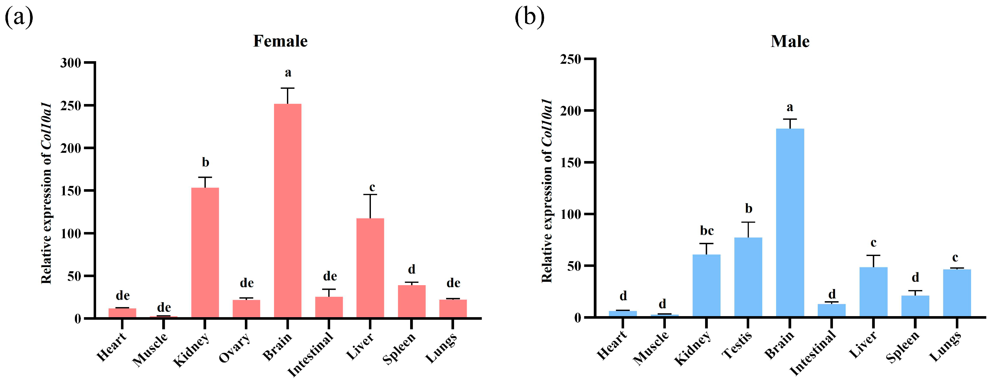 2.5. Expression Analysis of the Col10a1 Gene in Different Tissues of M. reevesii