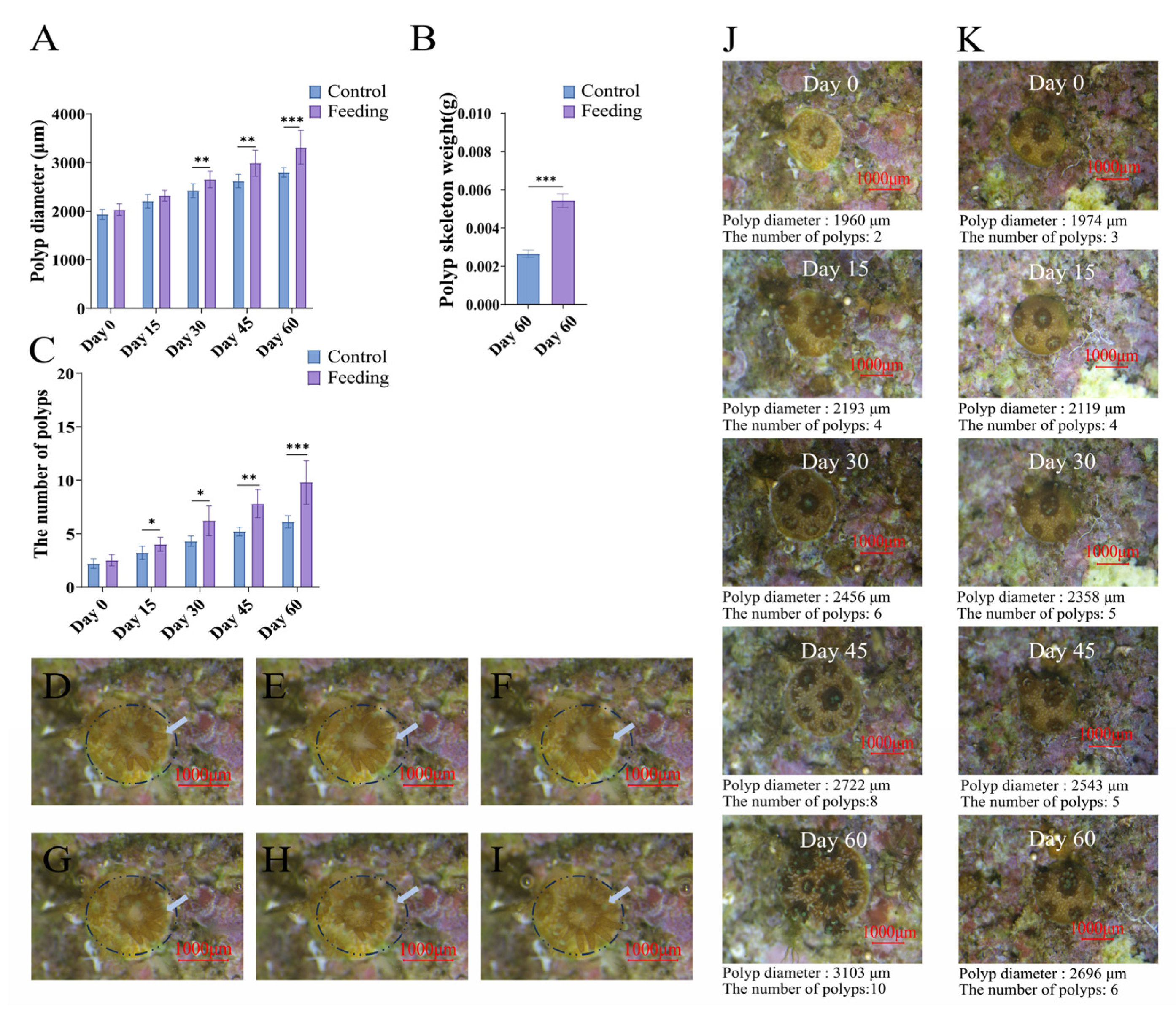 3.1. The Growth of Reattached Polyps After Brine Shrimp Feeding