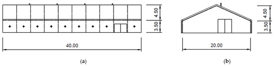 The indoor riding arena: (a) side and (b) front view.