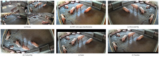 To mitigate the impact of low-quality data on model training, a structured processing pipeline was implemented. Initially, video segments affected by insufficient lighting or extreme weather conditions were manually filtered out. The specific criteria for exclusion were as follows: Insufficient lighting was defined as scenes where the overall illumination was too dark to distinguish the contours of pigs clearly without digital enhancement, typically corresponding to nighttime hours or periods of severe overcast. Extreme weather conditions primarily referred to heavy rain or snow that visibly obscured the camera lens or significantly degraded image clarity. Subsequently, frames were extracted at 20 s intervals from the validated videos to construct a preliminary image set in JPG format. Subsequently, a manual visual inspection was conducted to remove any remaining blurred or low-quality images, resulting in a refined dataset of 8070 unique, high-quality original images for model training and validation. This set of 8070 original images constitutes our final curated dataset before any augmentation.