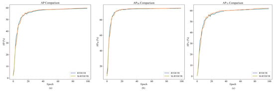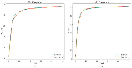 Comparison curves of and values between RTDETR and M-RTDETR models.