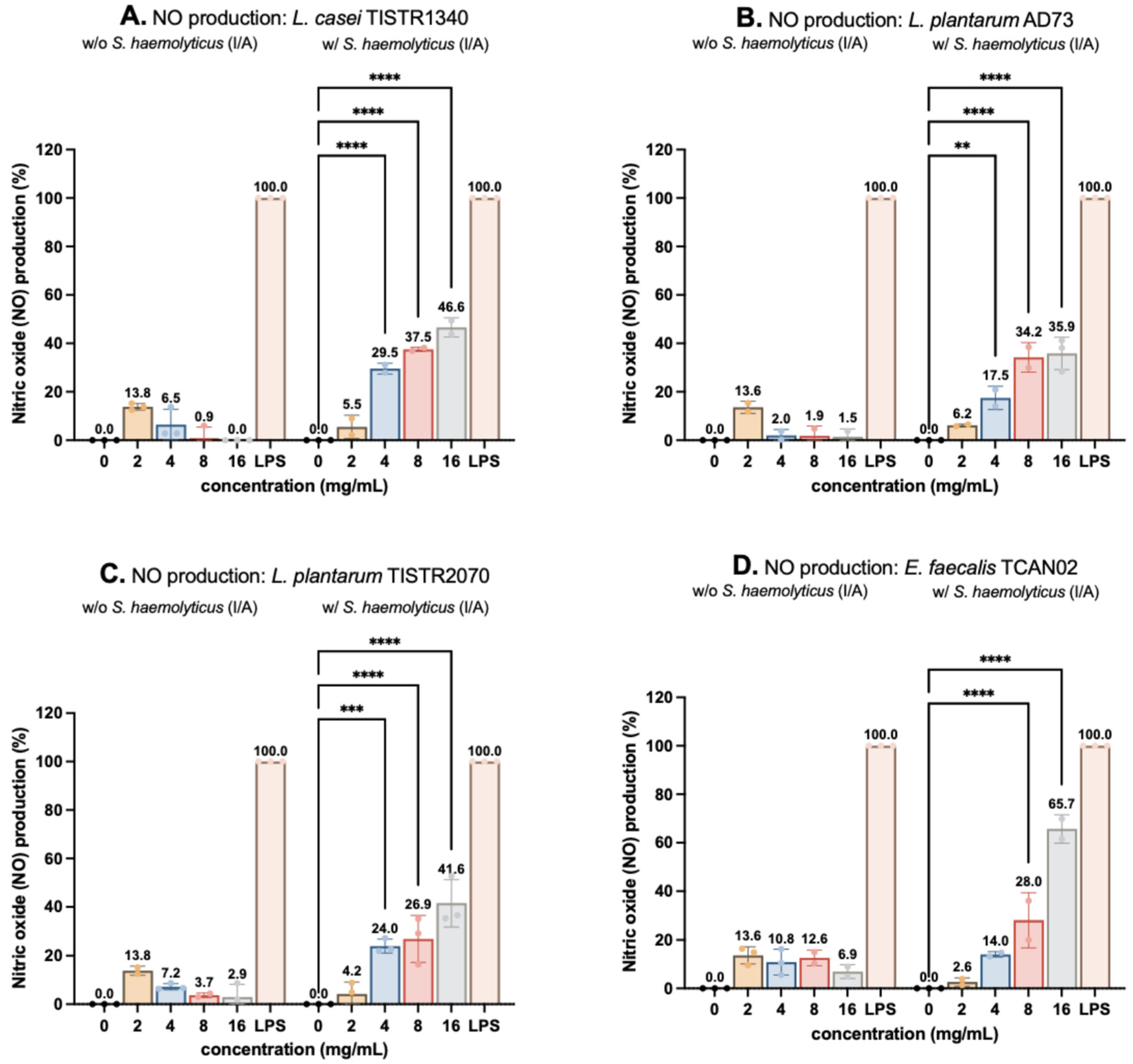 3.6. LAB-Derived Metabolites Potently Upregulate Inflammatory Mediators on RAW264.7 Murine Macrophages Exposed to S. haemolyticus