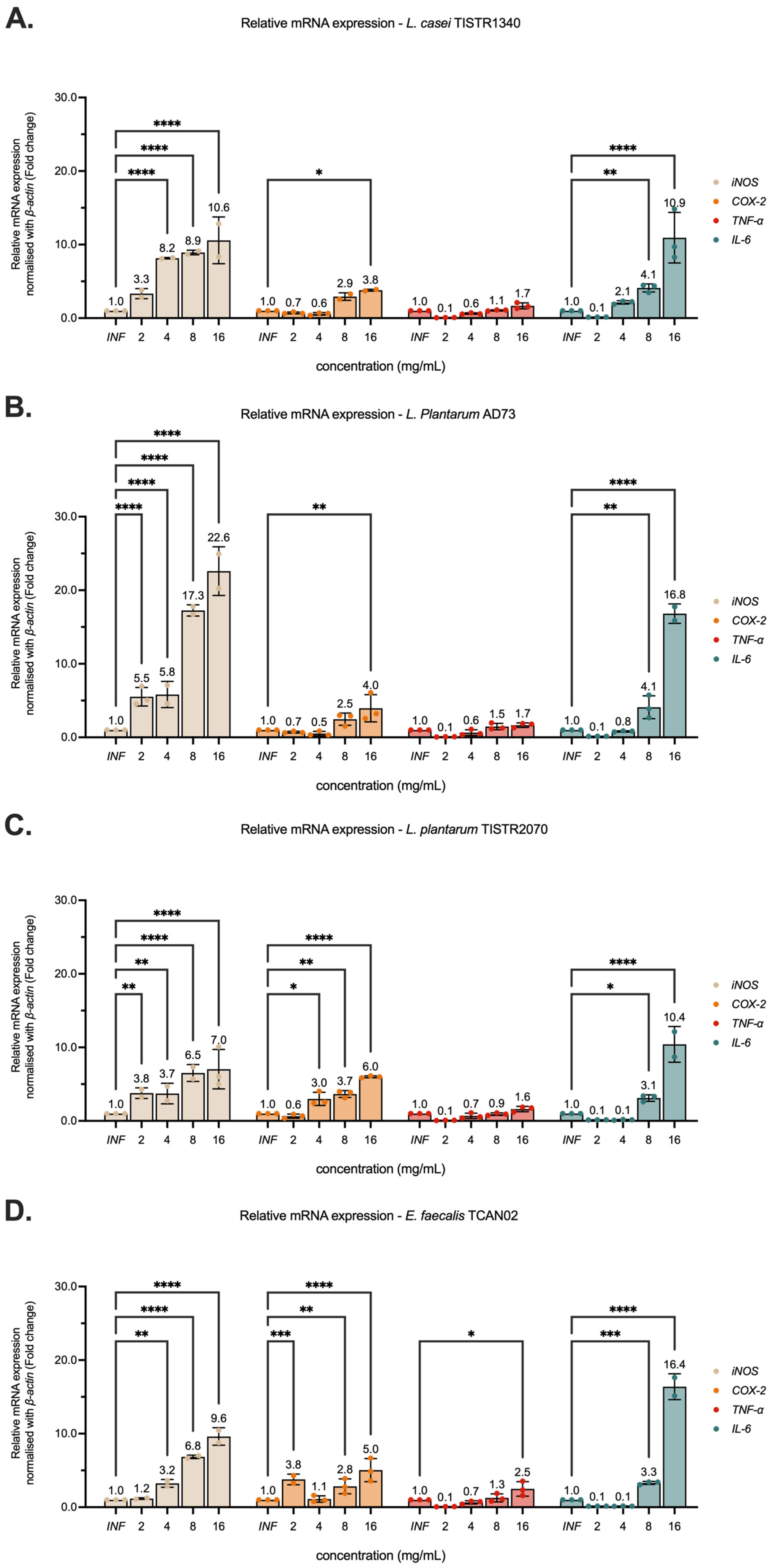 3.5. Modulation of Pro-Inflammatory Cytokine Gene Expression on RAW264.7 Murine Macrophages