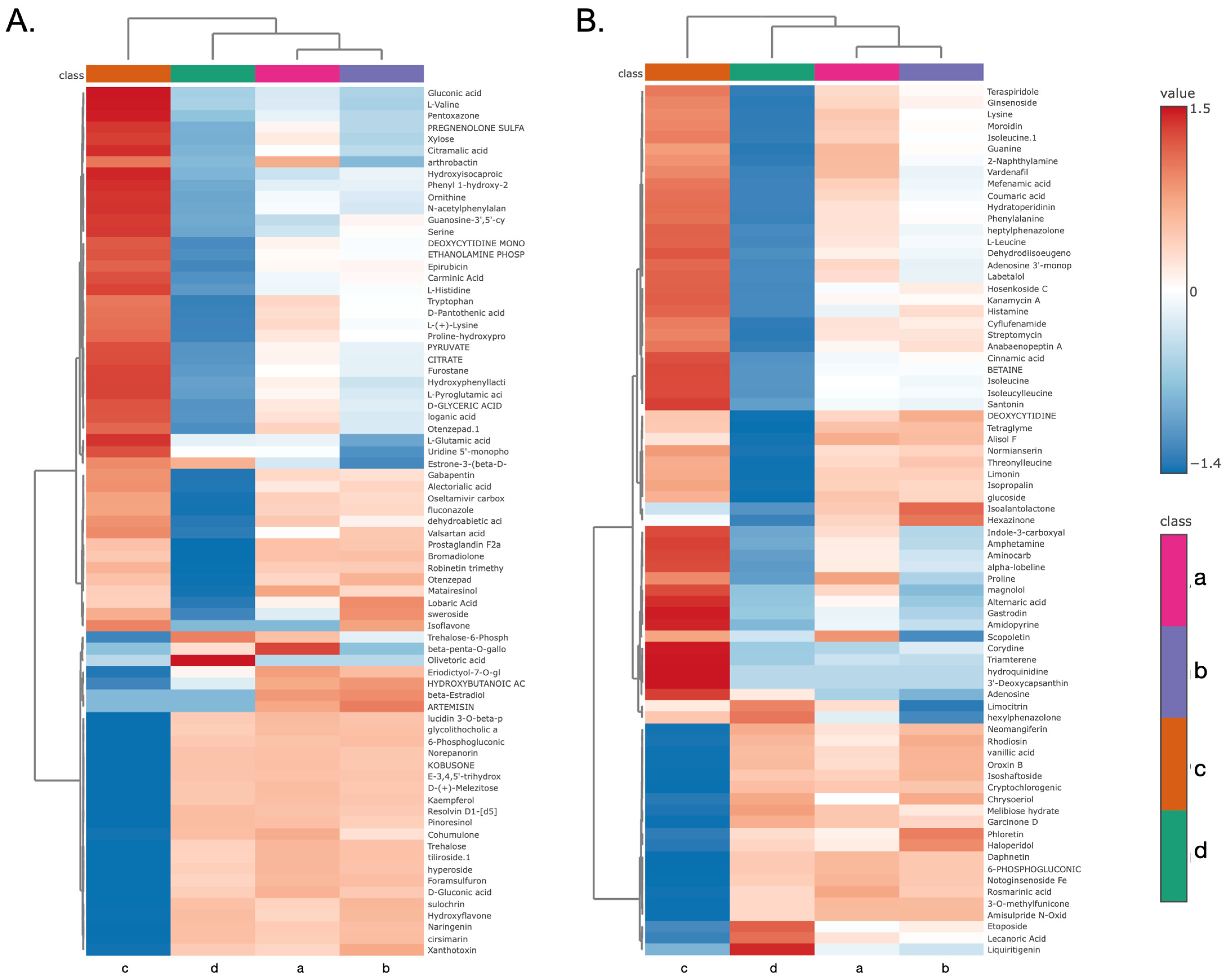 3.9. Hierarchical Clustering and Identification of Metabolites