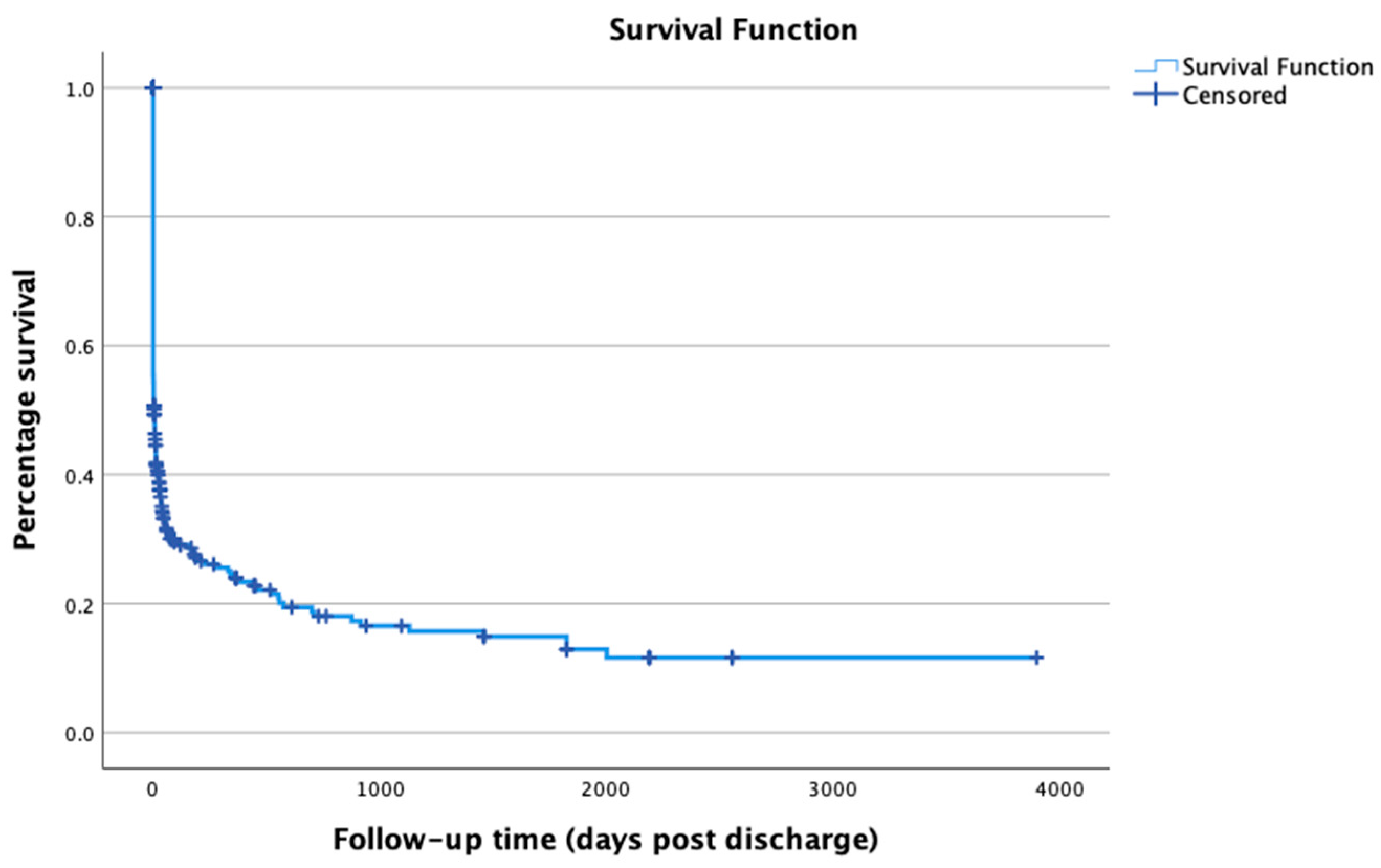 This study aimed to describe the survival of cats presenting with ascites and the different etiologies of this condition as well as identifying risk factors for a worsened prognosis. The most common causes of a peritoneal effusion in the current study population were septic peritonitis (86/498), followed by neoplasia (84/498), sterile inflammatory disease (79/498) and feline infectious peritonitis (69/498). Overall, 55% of cases survived to discharge from hospital. Cases who survived to discharge from hospital had a median survival time of 30.5 days after discharge. This is similar to the 21 days previously reported [