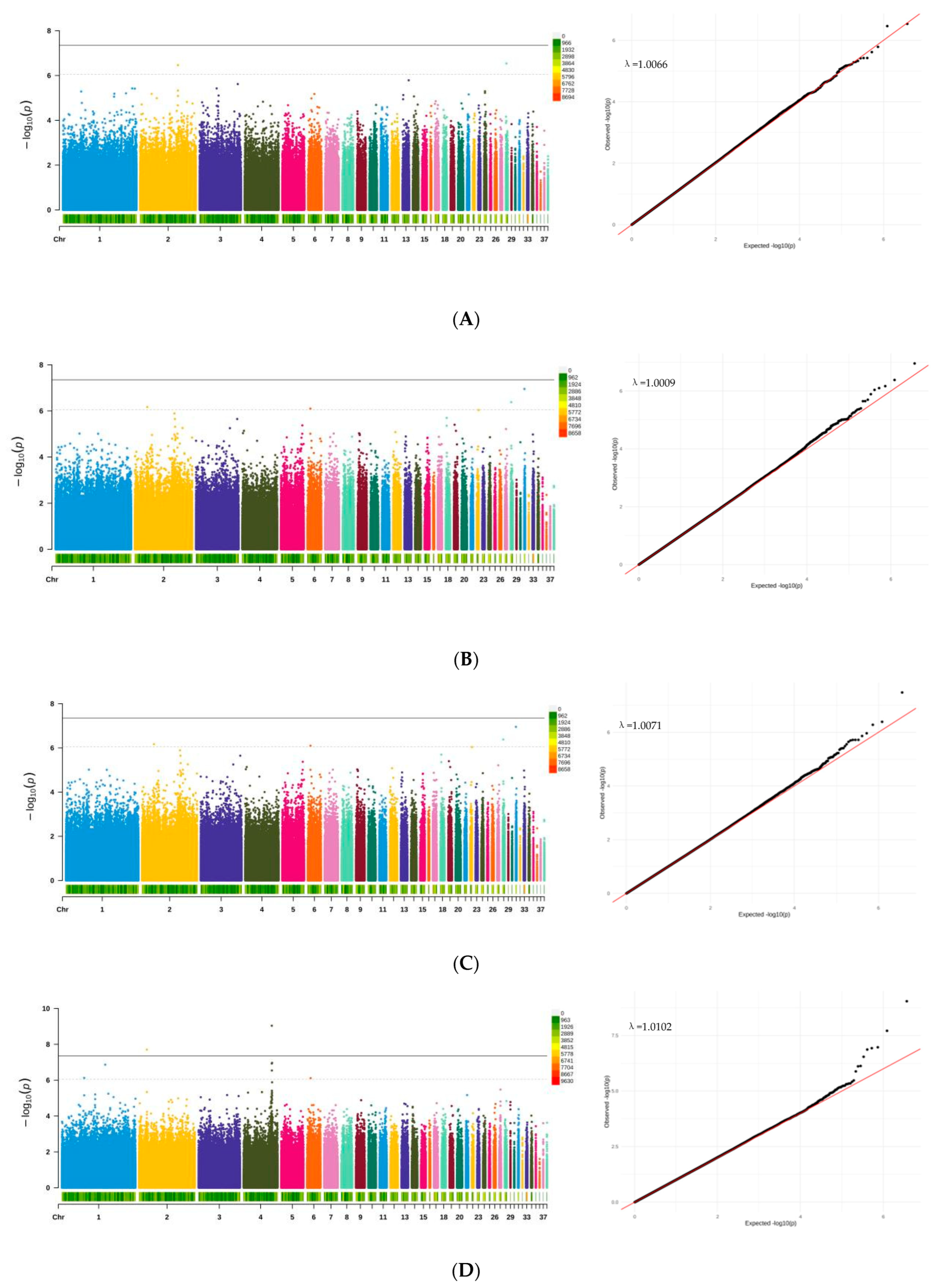 2.8. Genome-Wide Association Analysis