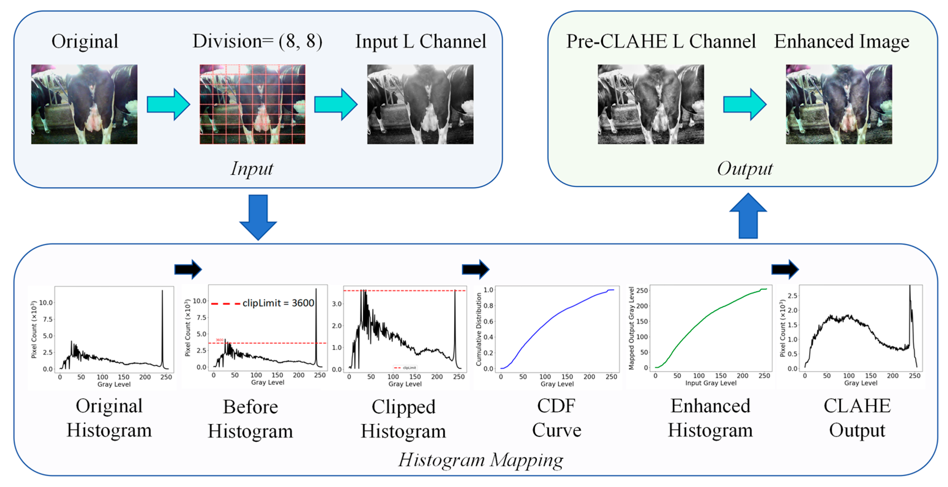 3.1.3. CLAHE-Based Overexposed Cow Image Enhancement