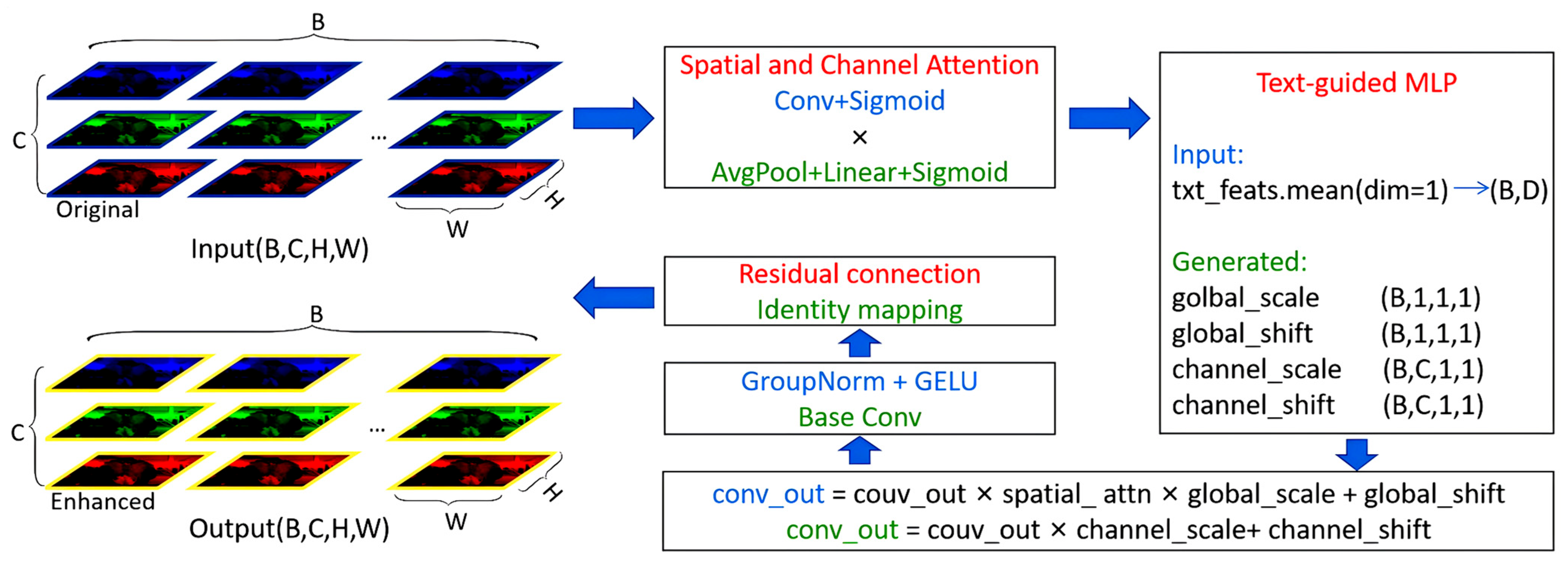 - Within the model, textual priors are employed to establish spatial structural relationships between irrelevant ROIs. Text-guided feature alignment and relational modelling then constrain cross-regional semantic consistency, thereby enhancing the robustness of detection and localisation.