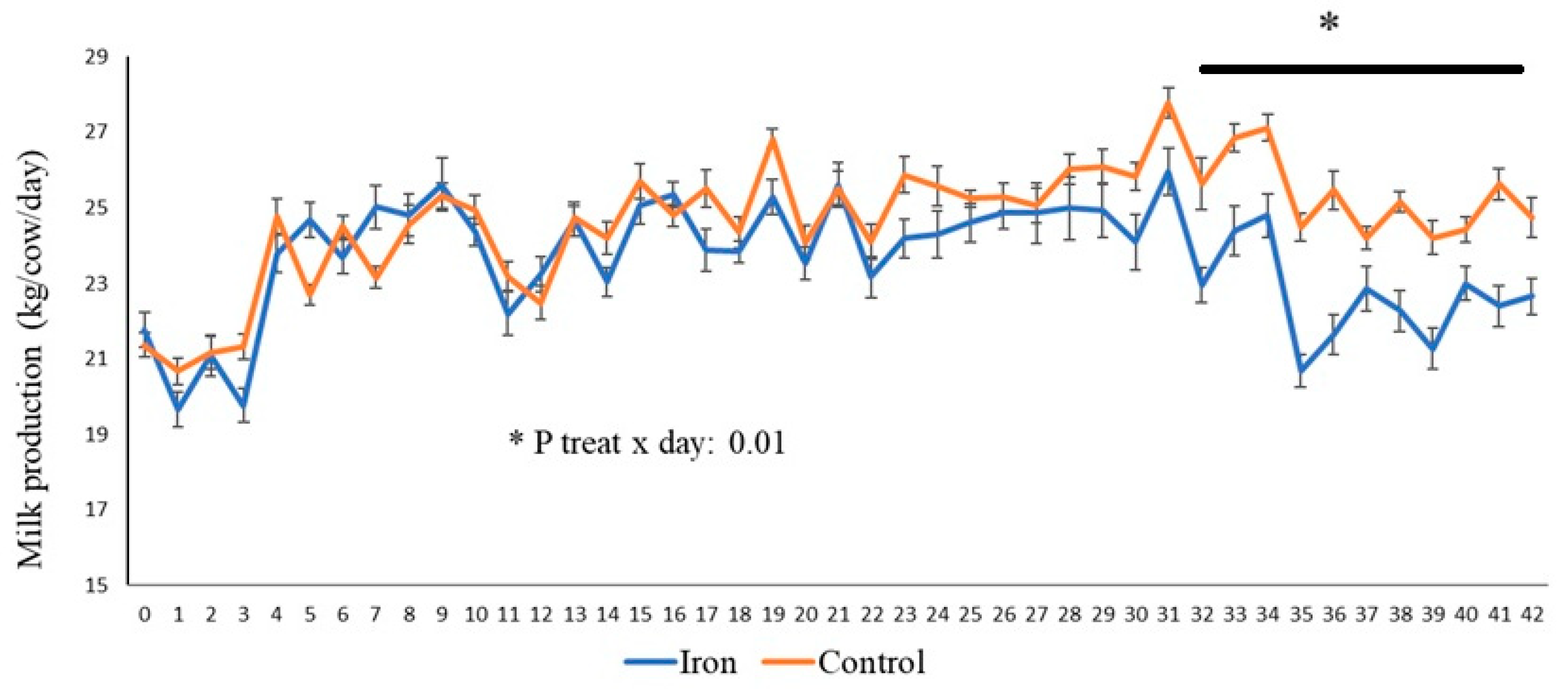 Table 4. Effects of organic iron supplementation on milk yield and composition, dry matter intake, and feed efficiency of cows in late lactation.