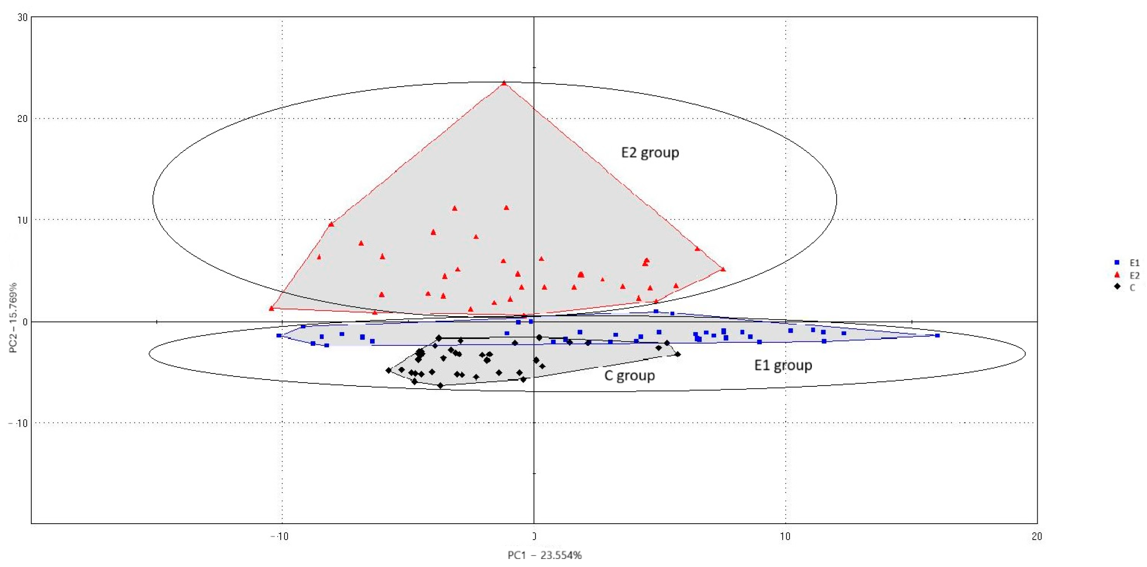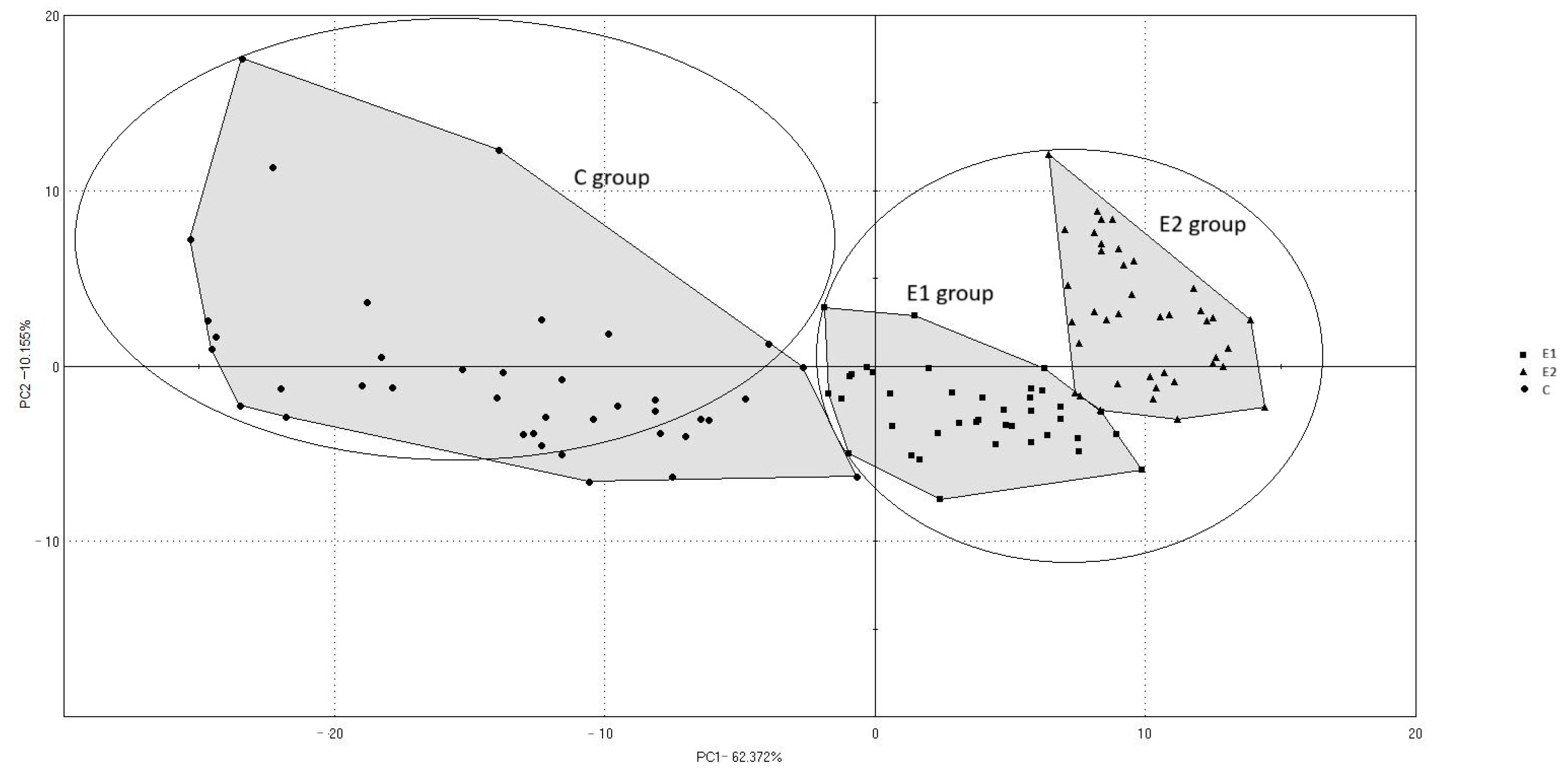 2.7. Instrumental Measurement of Volatile Compounds—e-Nose Analysis