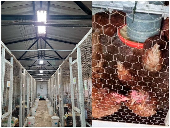 - Romano, G.G.; Demattê Filho, L.C.; Nascimento Amorim, M.; Santos Harada, É.; Ricci, G.D.; Narbot, M.Â.C.; Silva-Miranda, K.O. Animal welfare in free-range systems: Integrating environmental, behavioral, and physiological aspects in Lohmann Brown egg-laying hens. Res. Soc. Dev. 2025, 14, e11914348502. [Google Scholar] [CrossRef]