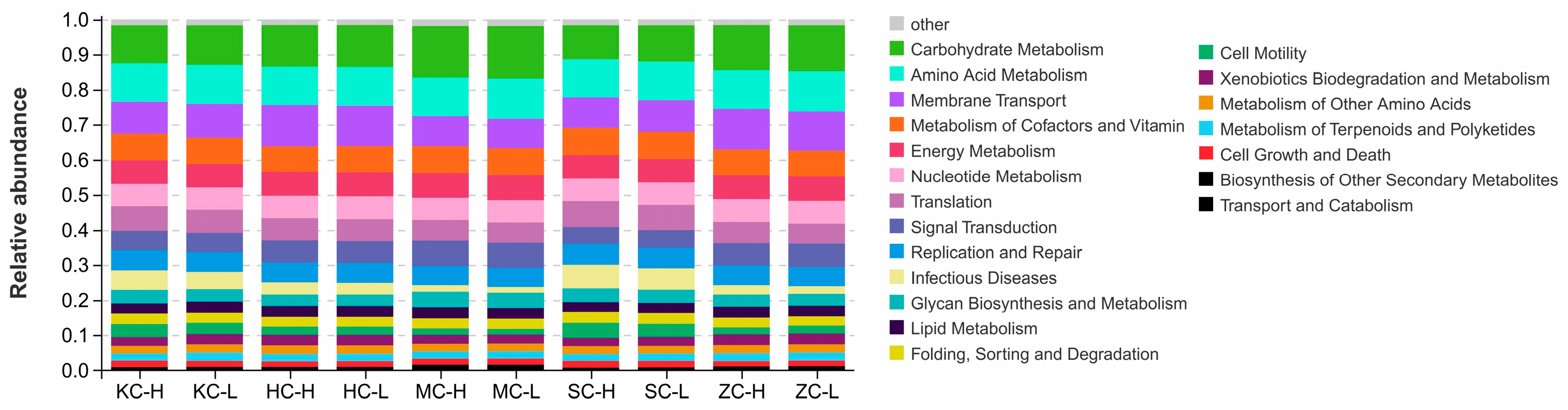 3.7. Cecal Microbial Function Between the High and Low Abdominal Fat Rate Groups