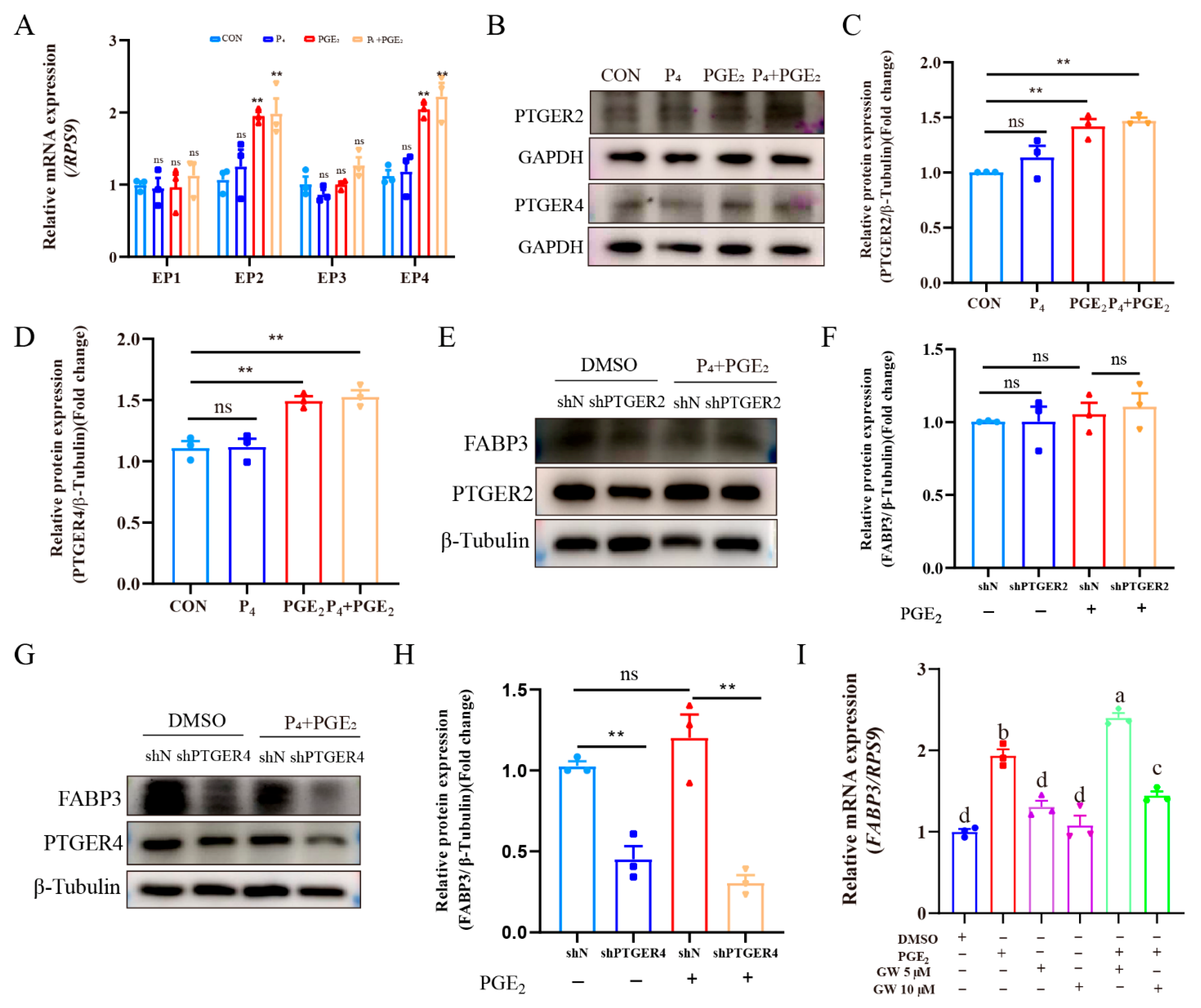 3.6. PGE2 Binds to PTGER4 to Regulate FABP3 Expression of Bovine Endometrial Epithelial Cells