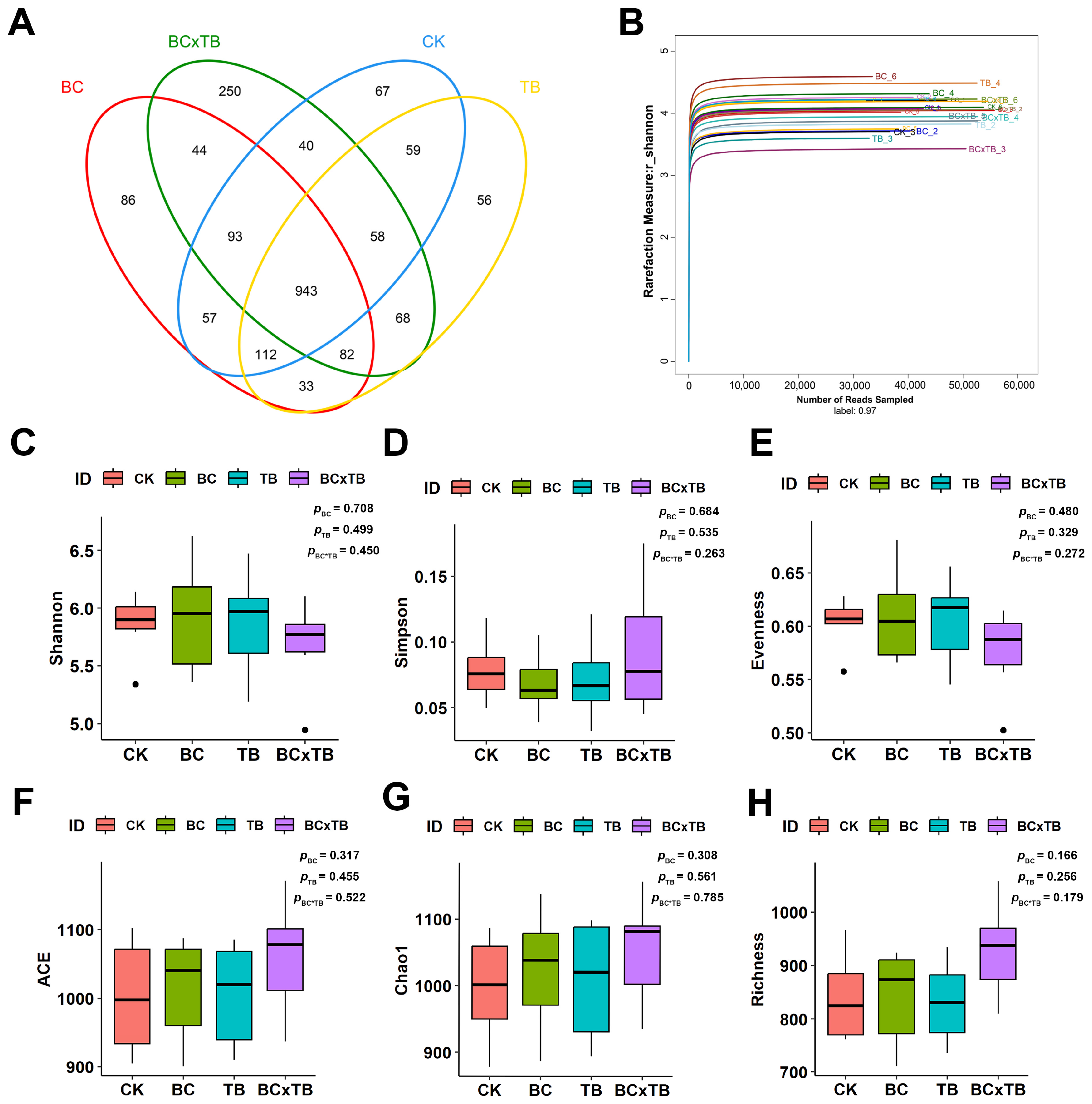 Data were analyzed using SPSS 26.0 statistical software and are presented as mean and standard error of the mean (SEM). All data were first subjected to normality and homogeneity of variances tests, followed by two-way ANOVA to evaluate the main effects of BC and TB as well as their interaction. The statistical significance level was set at