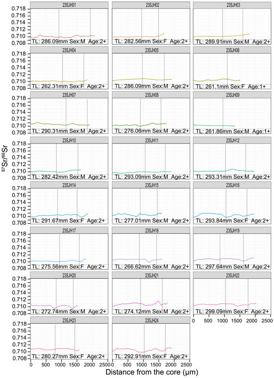 APA StyleXuan, Z., Wang, Y., Wang, S., Yang, Y., Wang, C., Liu, S., & Liu, K. (2025). Otolith Strontium Isotope (87Sr/86Sr) Reveals Mixed Life Histories of Coilia brachygnathus in the Middle–Lower Yangtze River Floodplain. Animals, 15(23), 3434. https://doi.org/10.3390/ani15233434