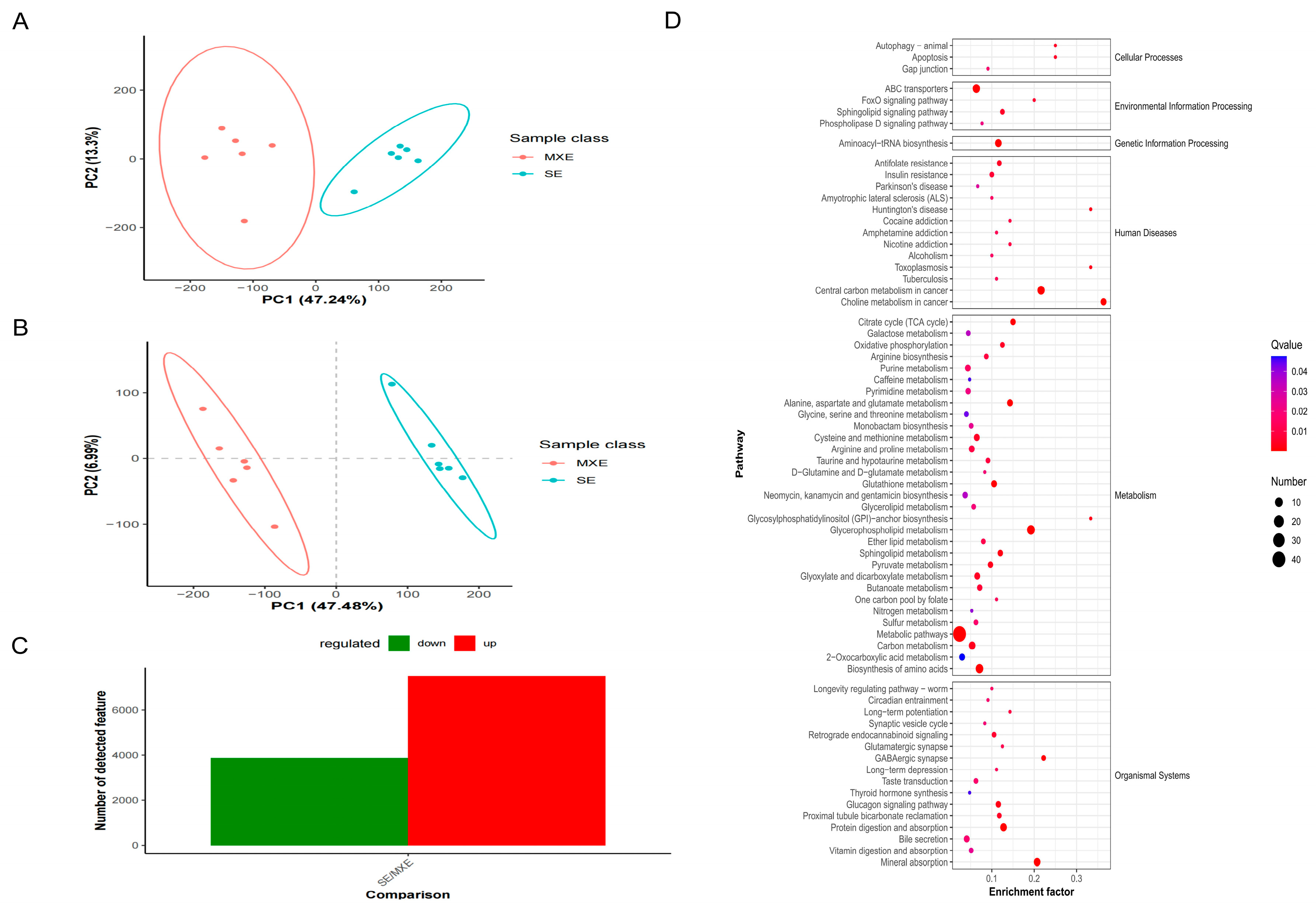 3.4.1. PCA and PLS-DA of Metabolites