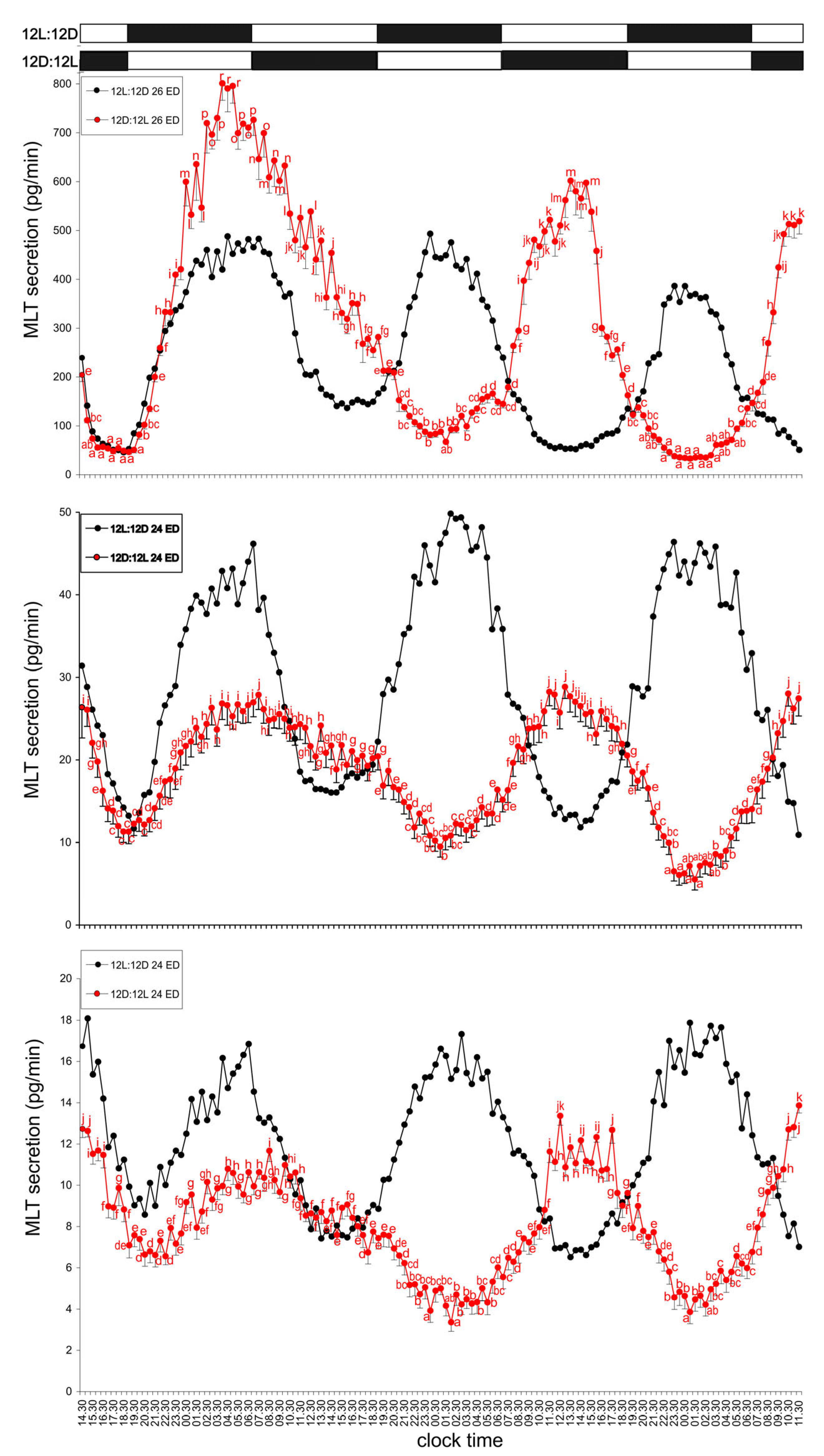 - Zeman, M.; Gwinner, E.; Herichová, I.; Lamošová, D.; Koštál, L. Perinatal development of circadian melatonin production in domestic chicks. J. Pineal Res. 1999, 26, 28–34. [Google Scholar] [CrossRef]