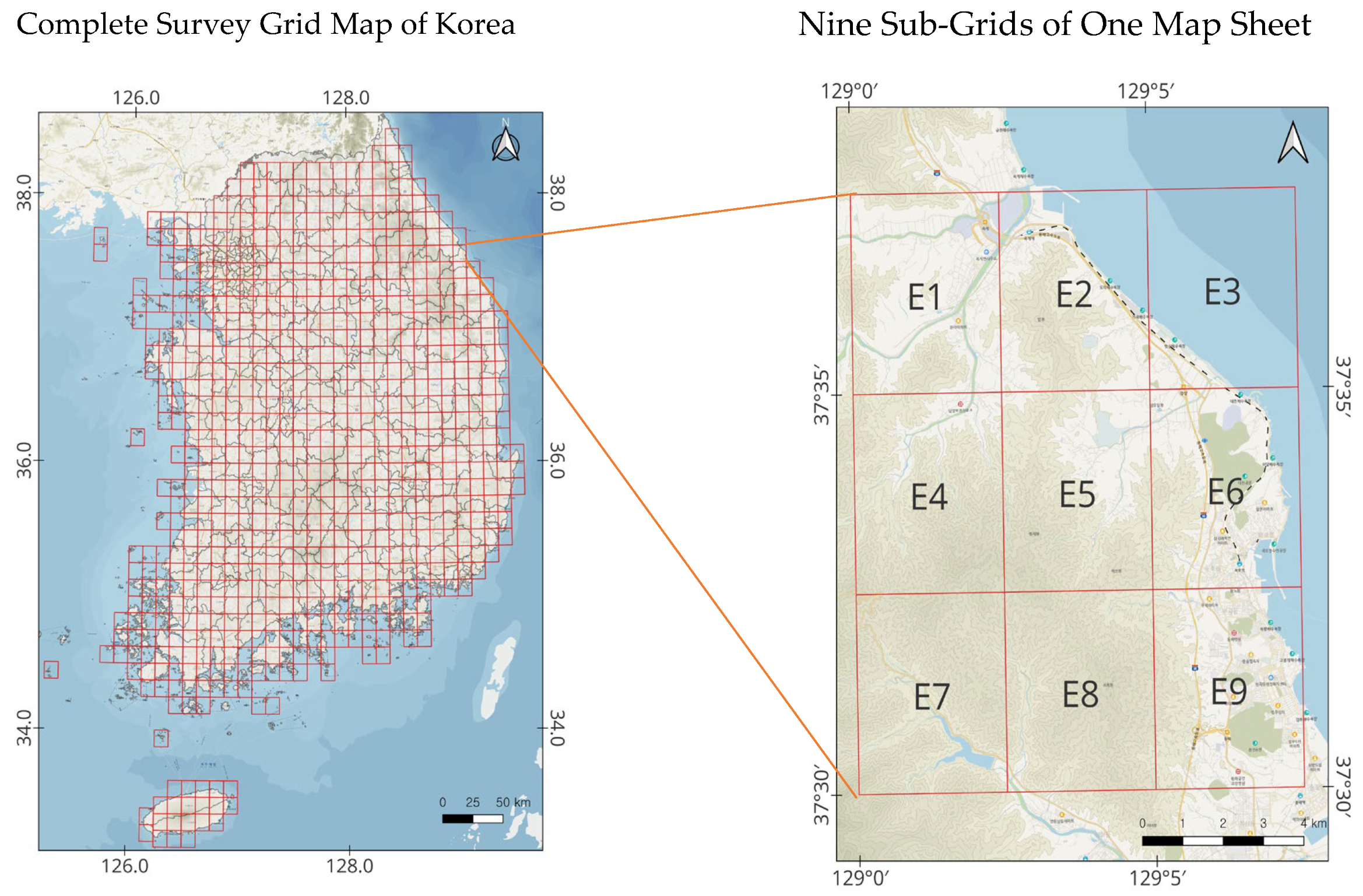 - National Institute of Ecology. Guidelines for the 6th National Survey of Natural Environment; National Institute of Ecology: Seocheon, Republic of Korea, 2023. [Google Scholar]