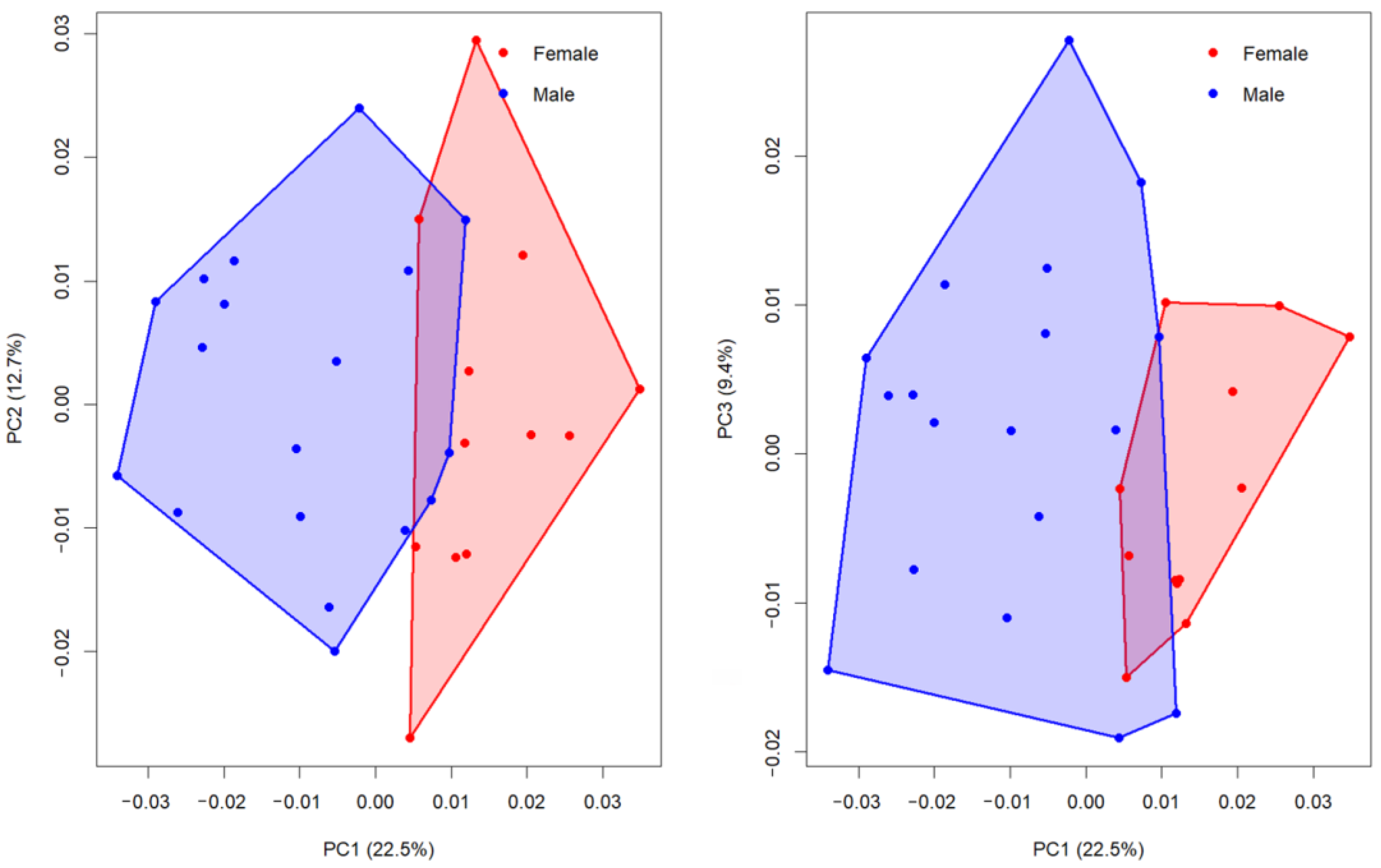 Figure 3). This indicates that although variation is distributed across multiple axes, a substantial portion of the sex-related signal is concentrated in the first component.