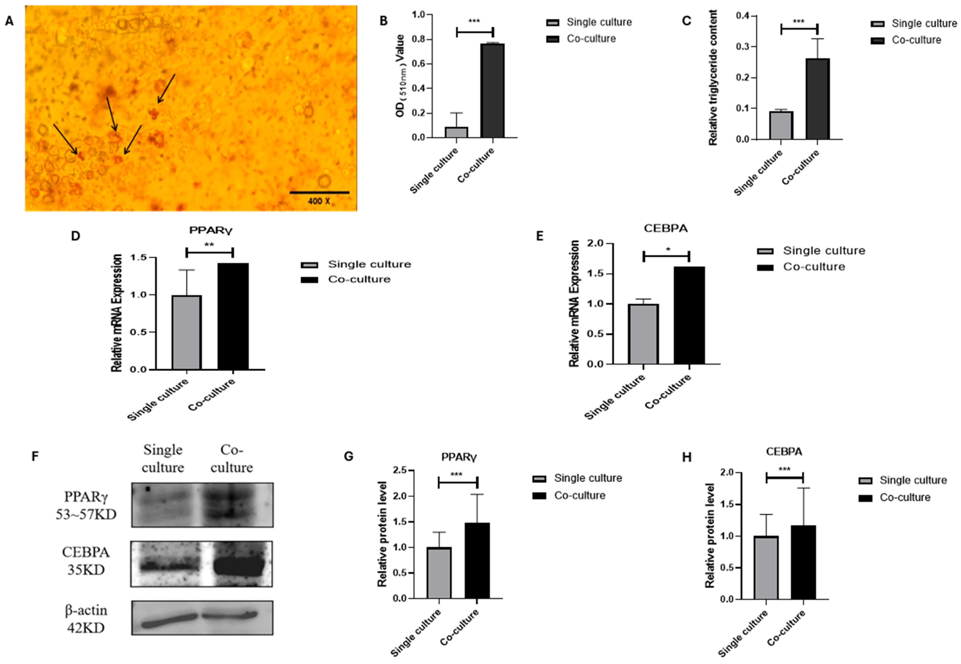 3.3. Lipogenic Transdifferentiation of MSCs in Co-Culture System
