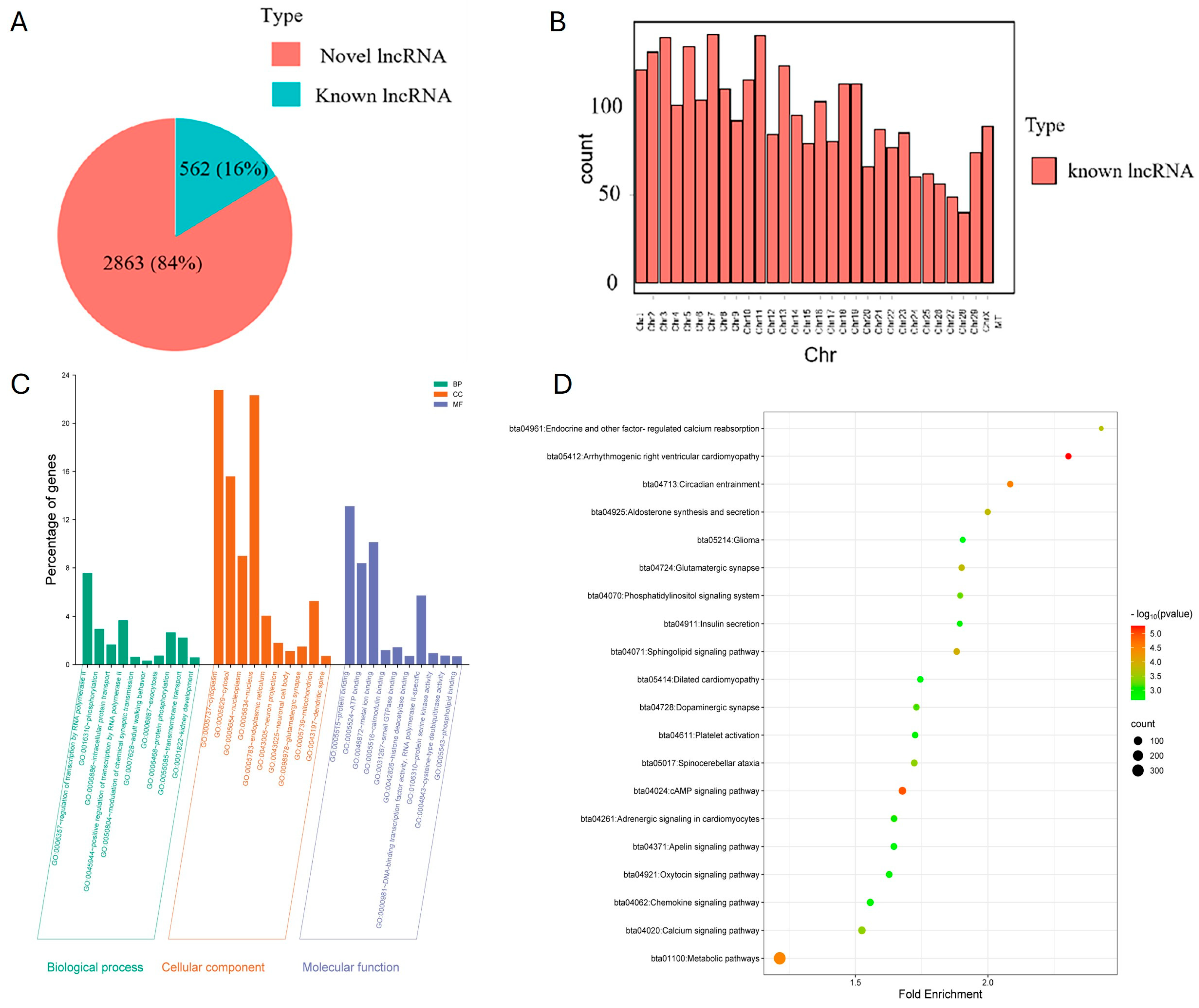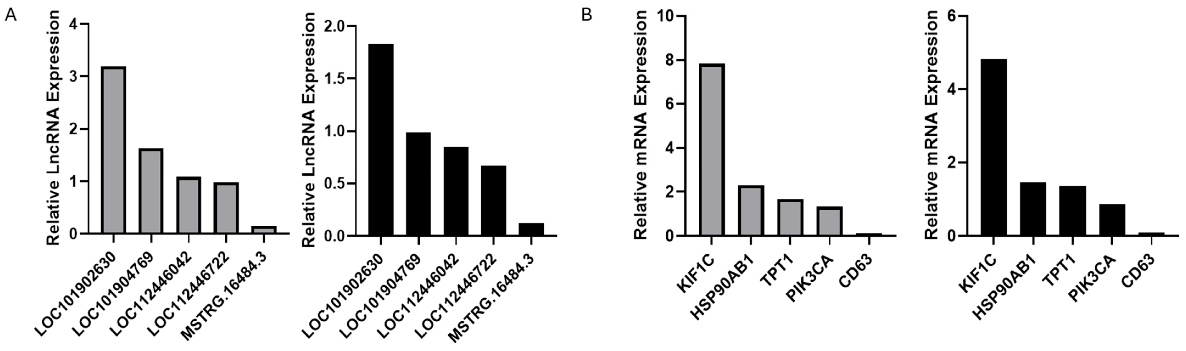 - Wu, X.; Zhou, X.; Xiong, L.; Pei, J.; Yao, X.; Liang, C.; Bao, P.; Chu, M.; Guo, X.; Yan, P. Transcriptome Analysis Reveals the Potential Role of Long Non-Coding RNAs in Mammary Gland of Yak During Lactation and Dry Period. Front. Cell Dev. Biol. 2020, 8, 579708. [Google Scholar] [CrossRef]