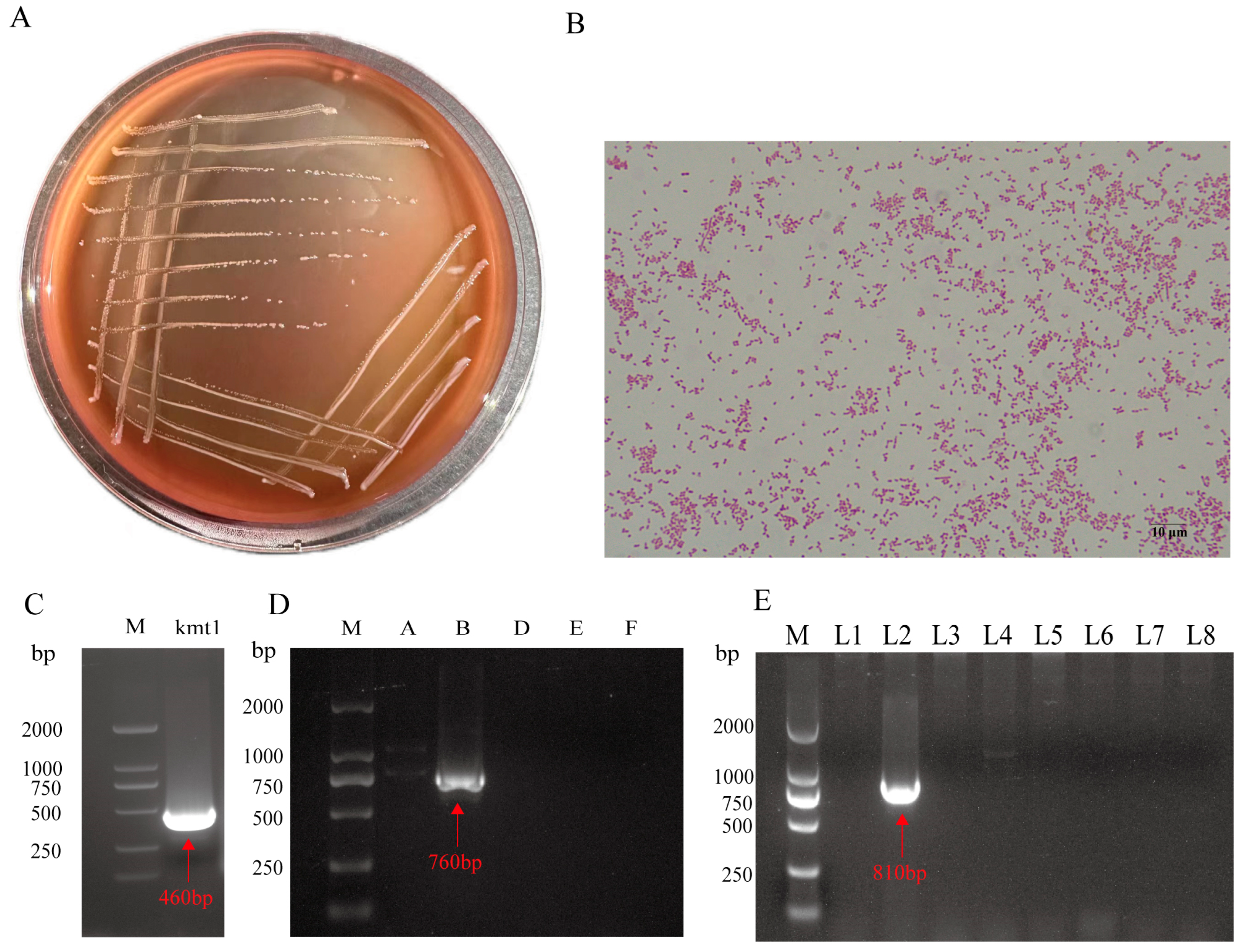 | P. multocida | Kmt1 | F-kmt | ATCCGCTATTATCCAGTGG | 460 |