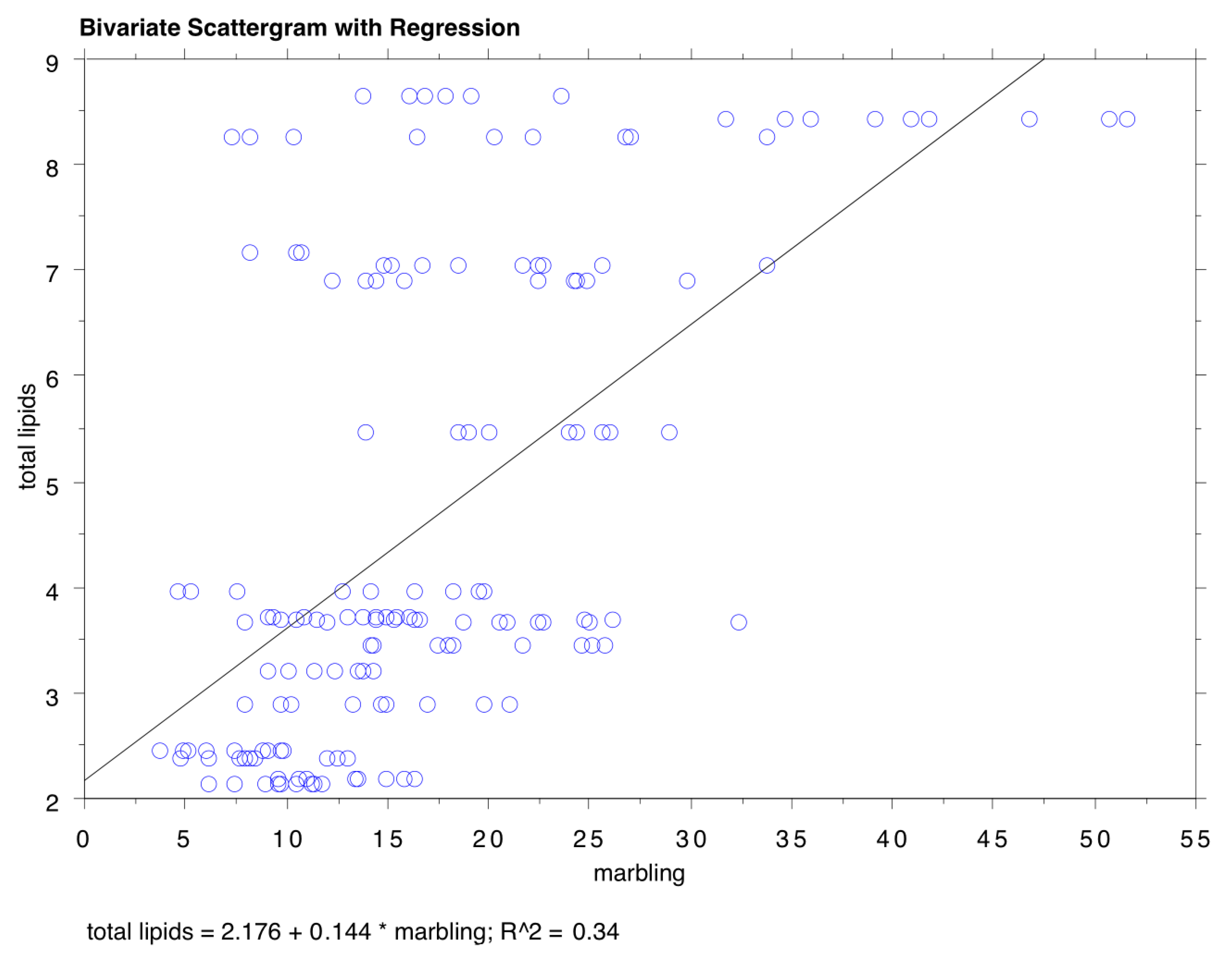 | Marbling (% on the Total Surface of the Sample) | Total Lipids (% of the Total Sample Weight) | |||||